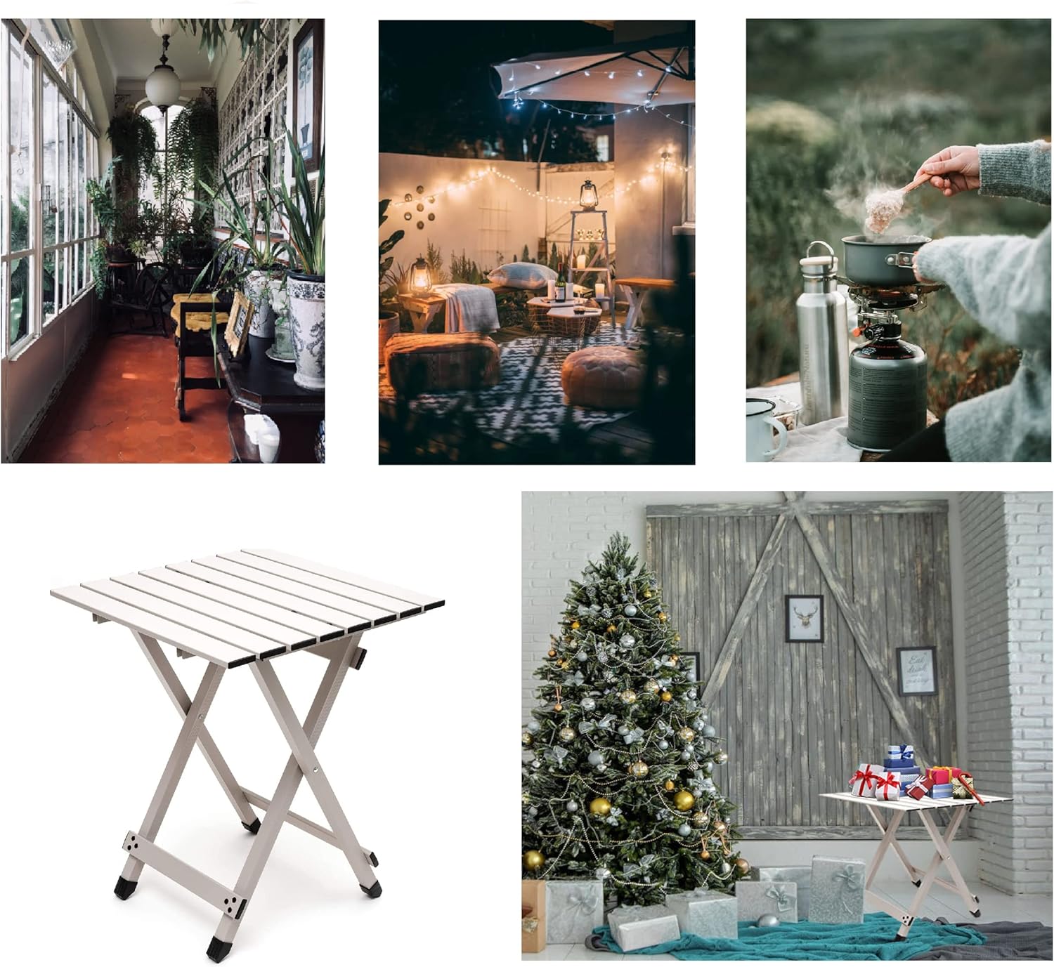 • Outdoor Side Table: Lightweight folding side table is ideal for outdoor activities like picnics, tailgating, RVing, fishing, and road trips. folding aluminum camp table is great for 2 people for dining, or can be used as a side table.
