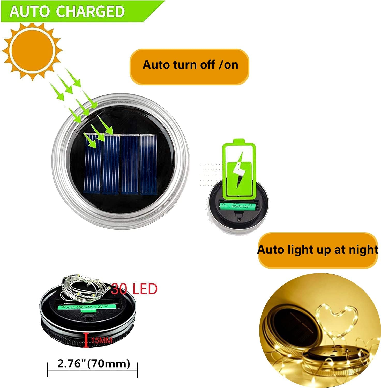 • Solar Powered: Fits regular mason jars, no jar included. Solar panel charges during the day for 8-12 hours of nighttime use.
