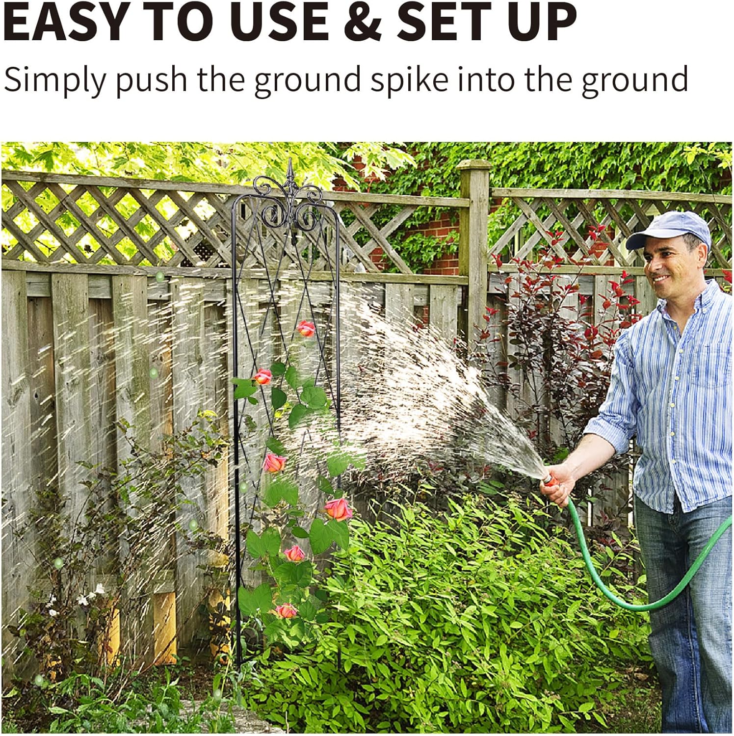 • Sturdy Stability Structure: With heavy duty iron frame and powder coated welded material. 8 inch ground spike inserts into the ground and add stability to the trellises.