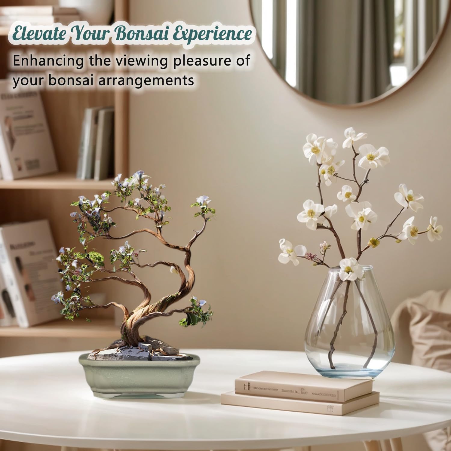 • Minimal But Not Simple: the ice cracks on the surface of the bonsai water pots come from ancient Chinese porcelain firing techniques. The traditional ceramic firing technology makes your bonsai plants breathe more smoothly and thriving.