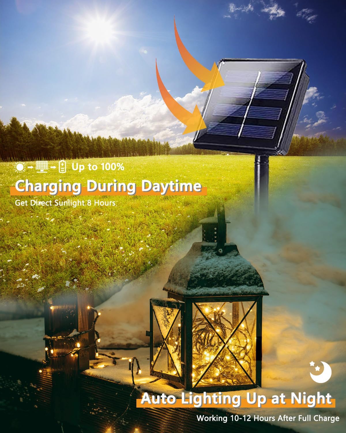 • [Longer Working Time & Biger Solar Panel/Batterys]: This solar string lights outdoor waterproof has updated to 1800mAh with superior quality and Biger solar panel. No extra electric cost, solar powered only, and it can work 10-12 hours after fully charged. This solar outdoor lights with auto sensor control, Auto on at dark and Auto off at daytime.