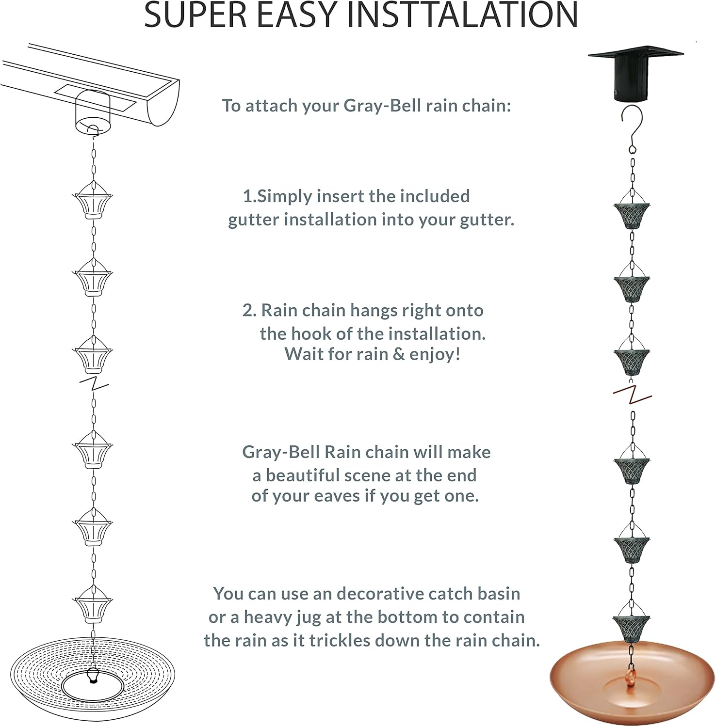 • EASY INSTALLATION: Remove your downspout and attach the included gutter adapter to the opening. The 8.5FT chain is adjustable to fit any length.