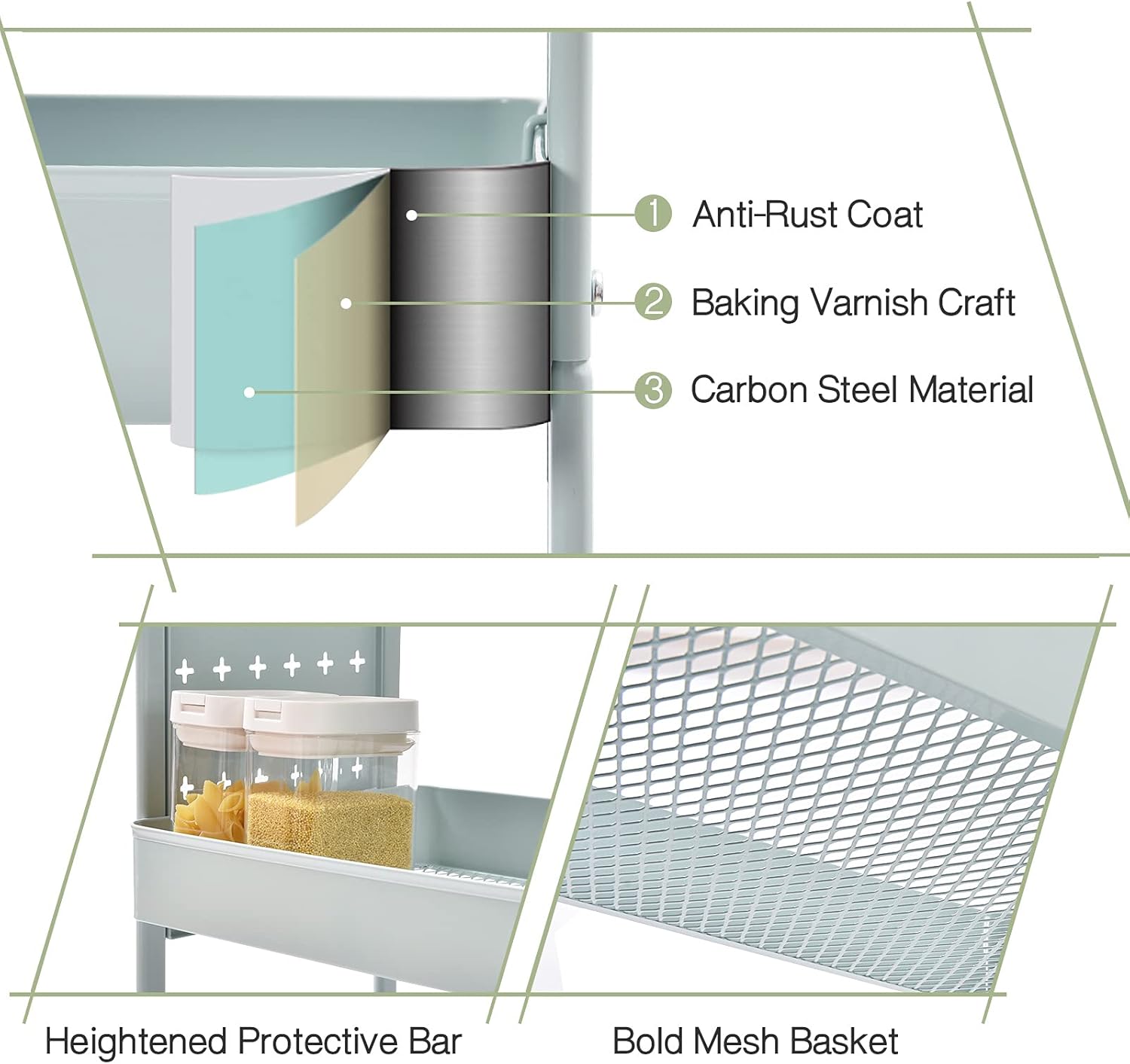 • 💦EXPLORE MORE | Available 4 Colors: White / Grey / Pink / Light Green. Product Size: 17.7 x 11.8 x 29.5 inches. | It is easy to follow the installation manual to assemble the cart. | Feel free to get touch with our service assistant for any issue.