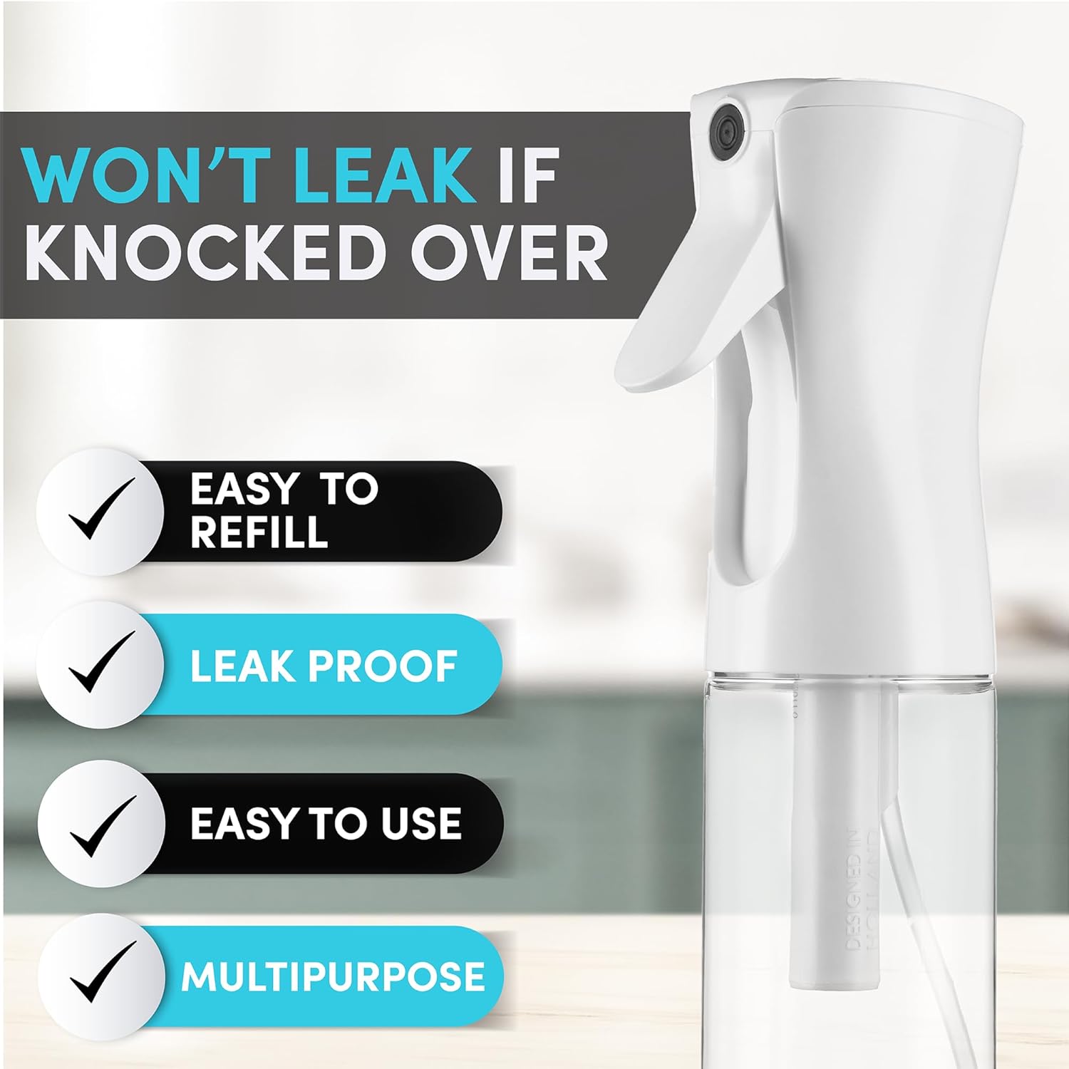 Hula Home Spray Bottle for Hair (10.1oz/300ml) - Powered by Flairosol® Spray Technology - Continuous Ultra Fine Mist Sprayer – For Hairstyling, Cleaning, Salons, Plants, Essential Oil & More - White