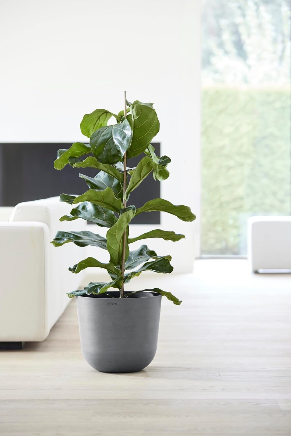 Ecopots Oslo Durable Modern Round Indoor/Outdoor Recycled-Based Composite Flower Pot Planter, Grey, 14"