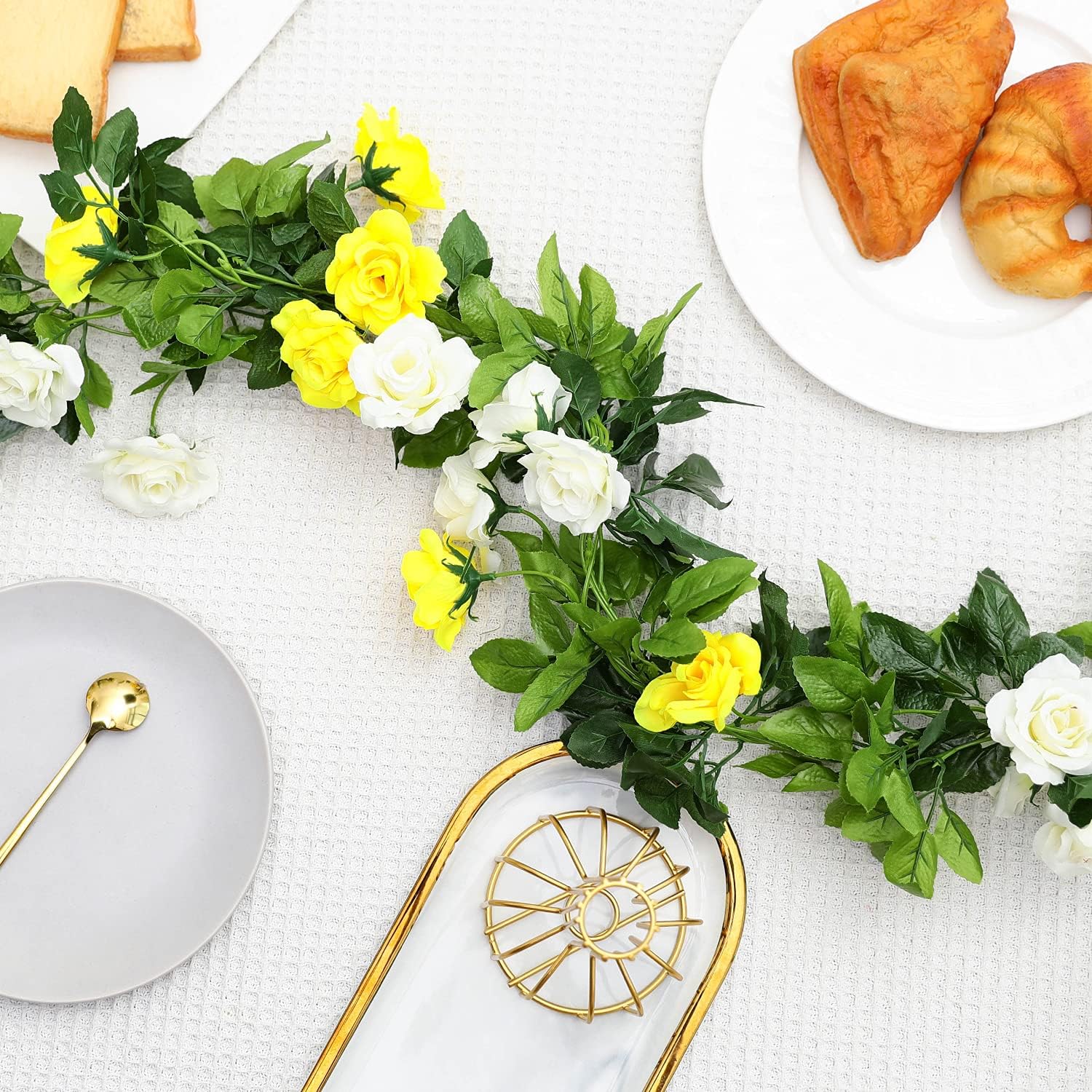 • LIFELIKE YELLOW GARLAND: The floral flower garland vines consist of light yellow roses and white roses, complement each other, turn more softer and more colorful to beauty your life