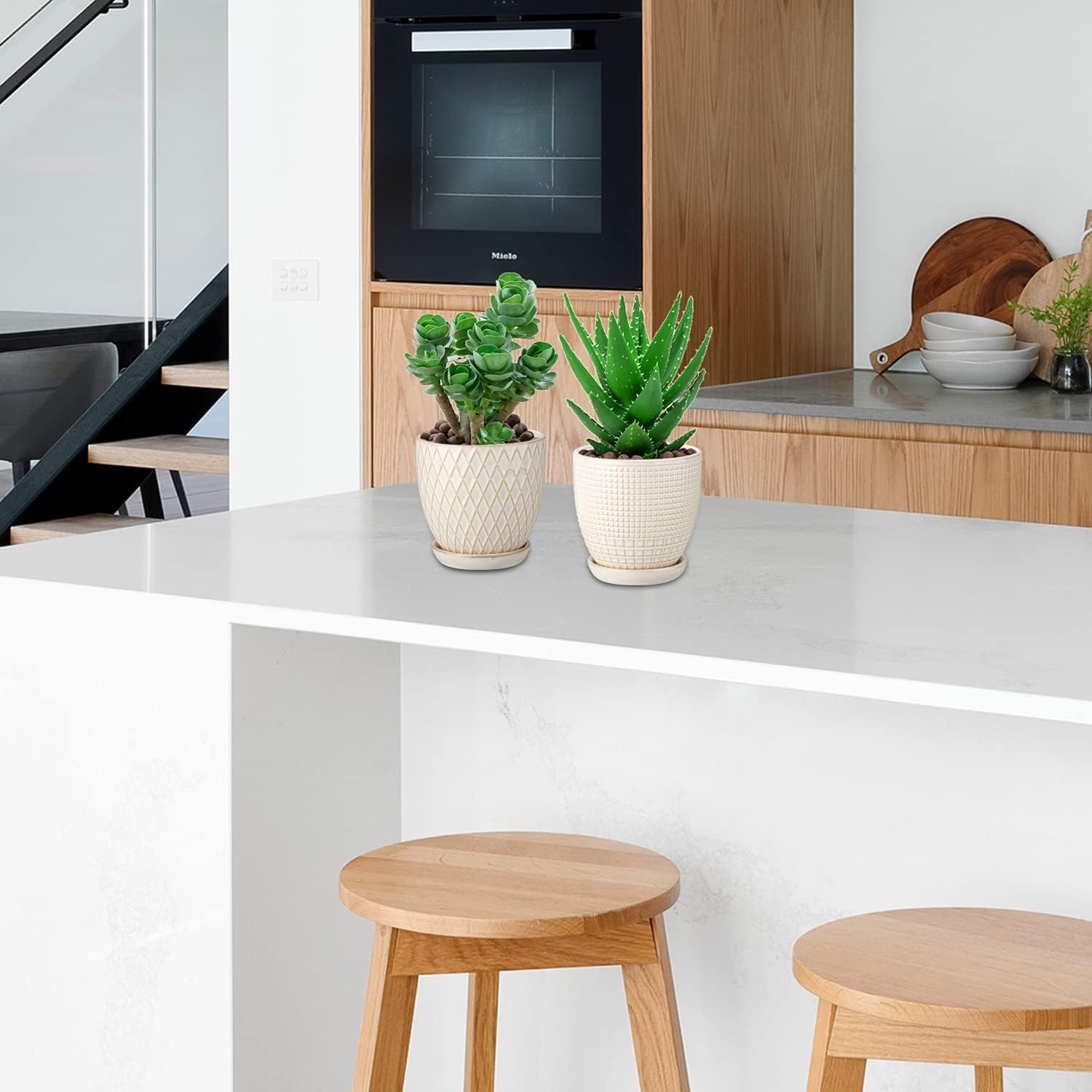 • 【4" Pots with Drainage Holes and Saucers】: Each 4 inches ceramic pots for indoor plants comes with a drainage hole on the bottom, it can drain the stagnant water to avoid the roots of the plant from rot; The attached ceramic saucer can prevent the water run off as much as possible(Plants NOT Included)