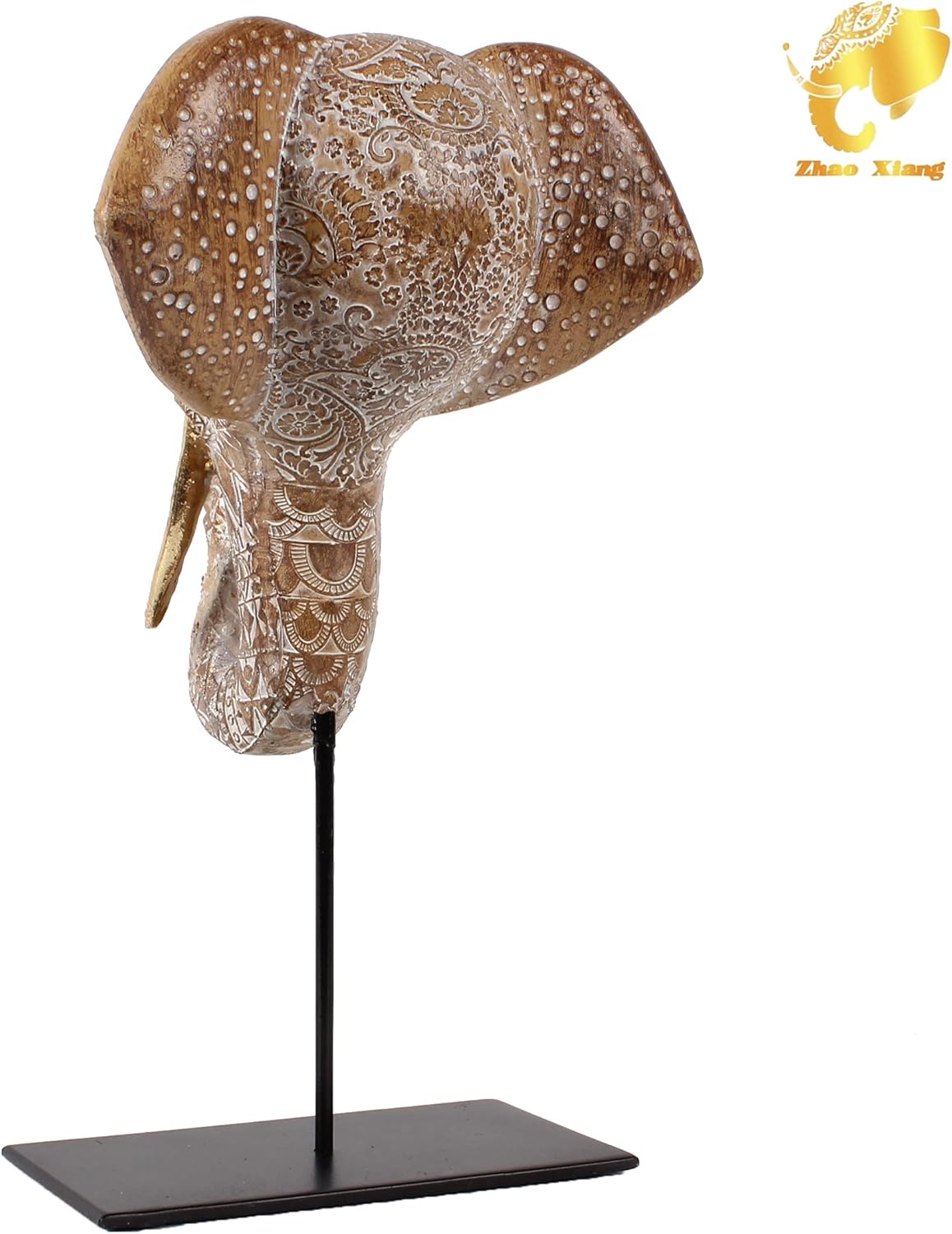 • . Decorate your living space with the Zhao Xiang African Elephant Head Resin Sculpture. This modern home decor piece is designed to bring good luck and prosperity, making it an ideal addition to any home or office.