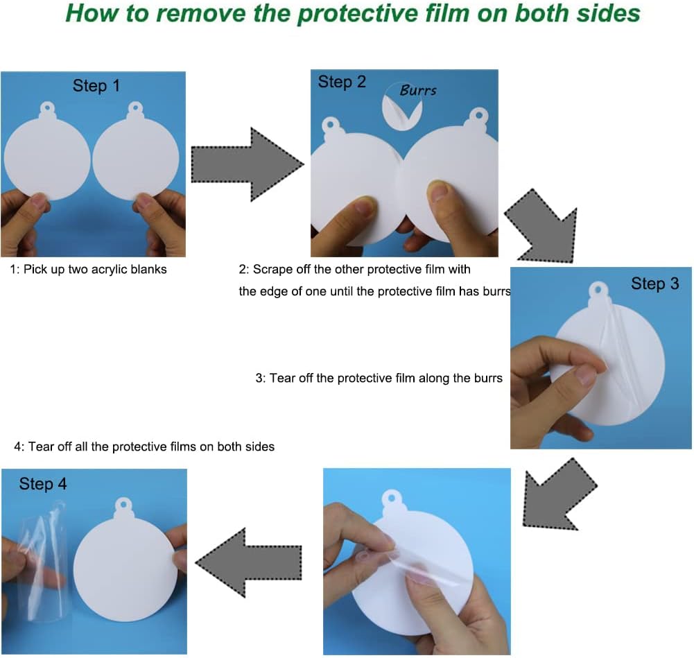 • Easy to Use: these acrylic Christmas ornament blanks are laser cutting, smooth edges, all acrylic ornaments have a protective film on both sides, just tear off the film before use. Each acrylic ornament comes with a hole, which is convenient for you to hang it on the place that you want.