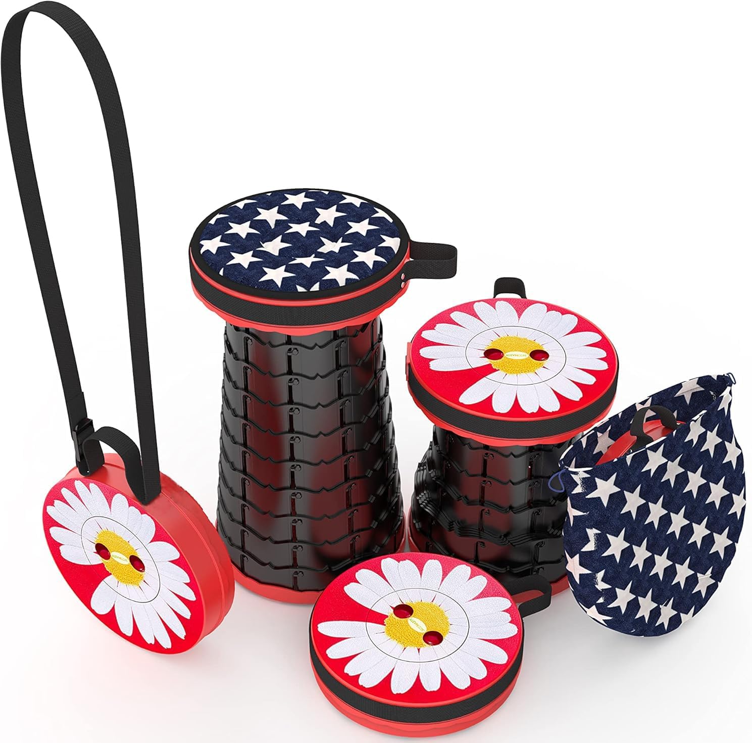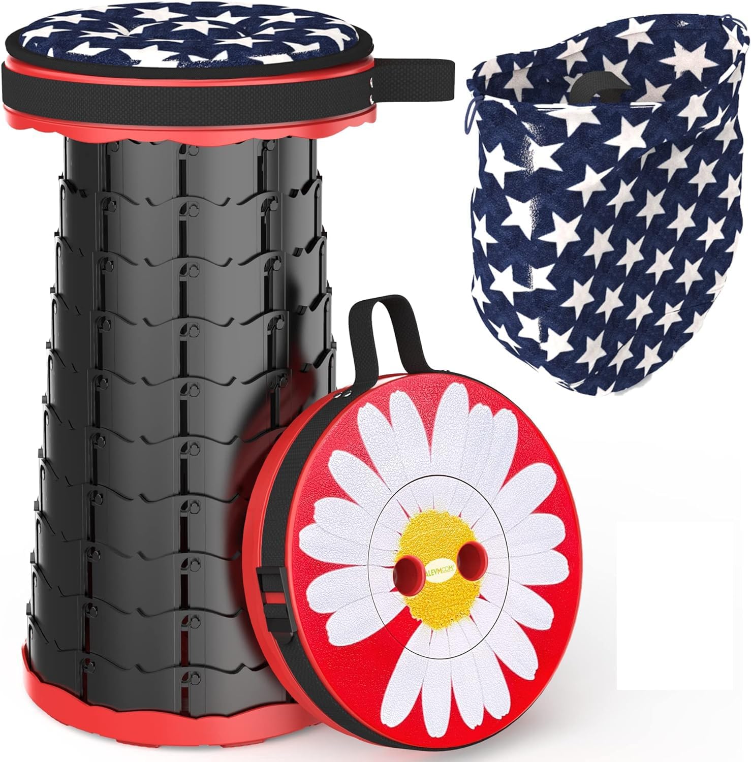 ALEVMOOM Upgraded Portable Collapsible Folding Stool with Cushion Retractable Telescoping Stool for Adults Sturdy Capacity 550lbs Camping Chair for Outdoor Hiking Garden BBQ with Bag