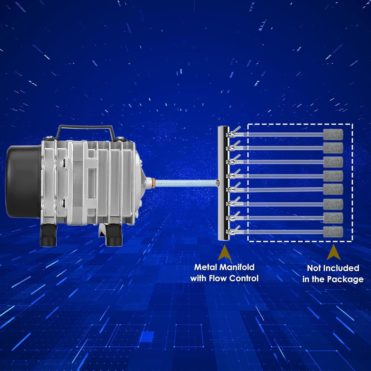 Aquarium Air Pump with Aluminum Housing, Commercial Air Pump with 8-Outlet Air Manifold, Pond Aerator Fish Tank Bubbler for Aquarium, Pond, Hydroponics (1780GPH-100W)