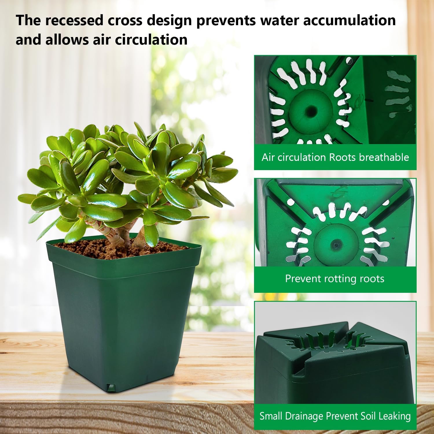 Square Seedling Nursery Pots 3.15 Inches 100 Pcs for Small Succulents or Cacti Flower Plastic Pots Sturdy Reusable (Green, 3.14Inches,100Pcs)