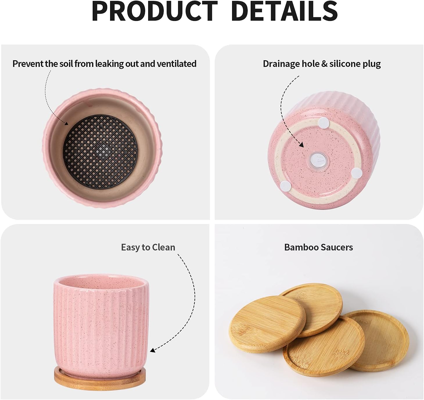 • Stylish and Functional: Modern stripe design with removable bamboo saucer for easy plant care.