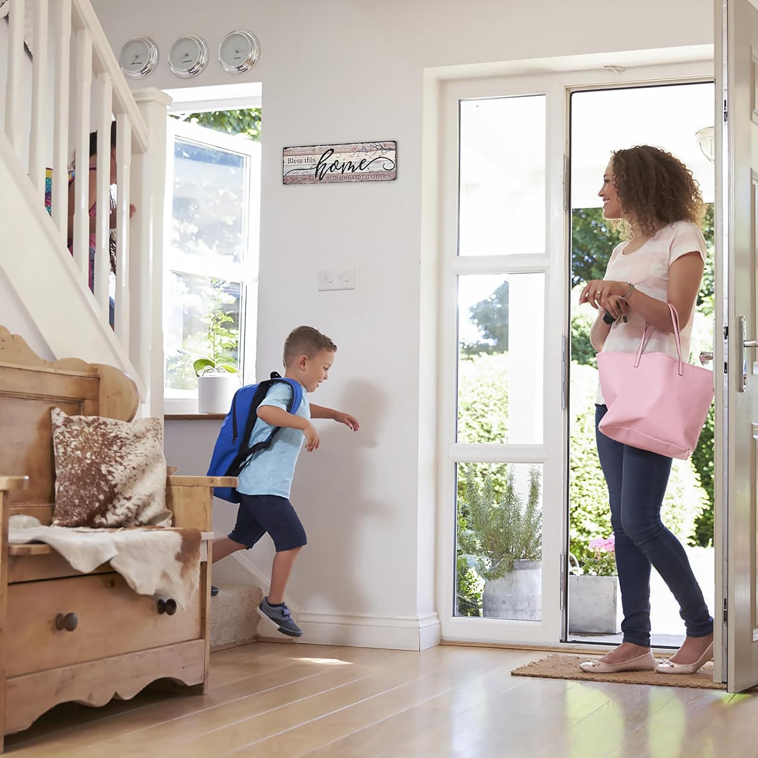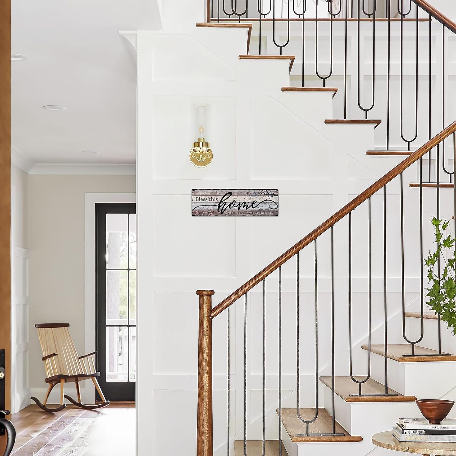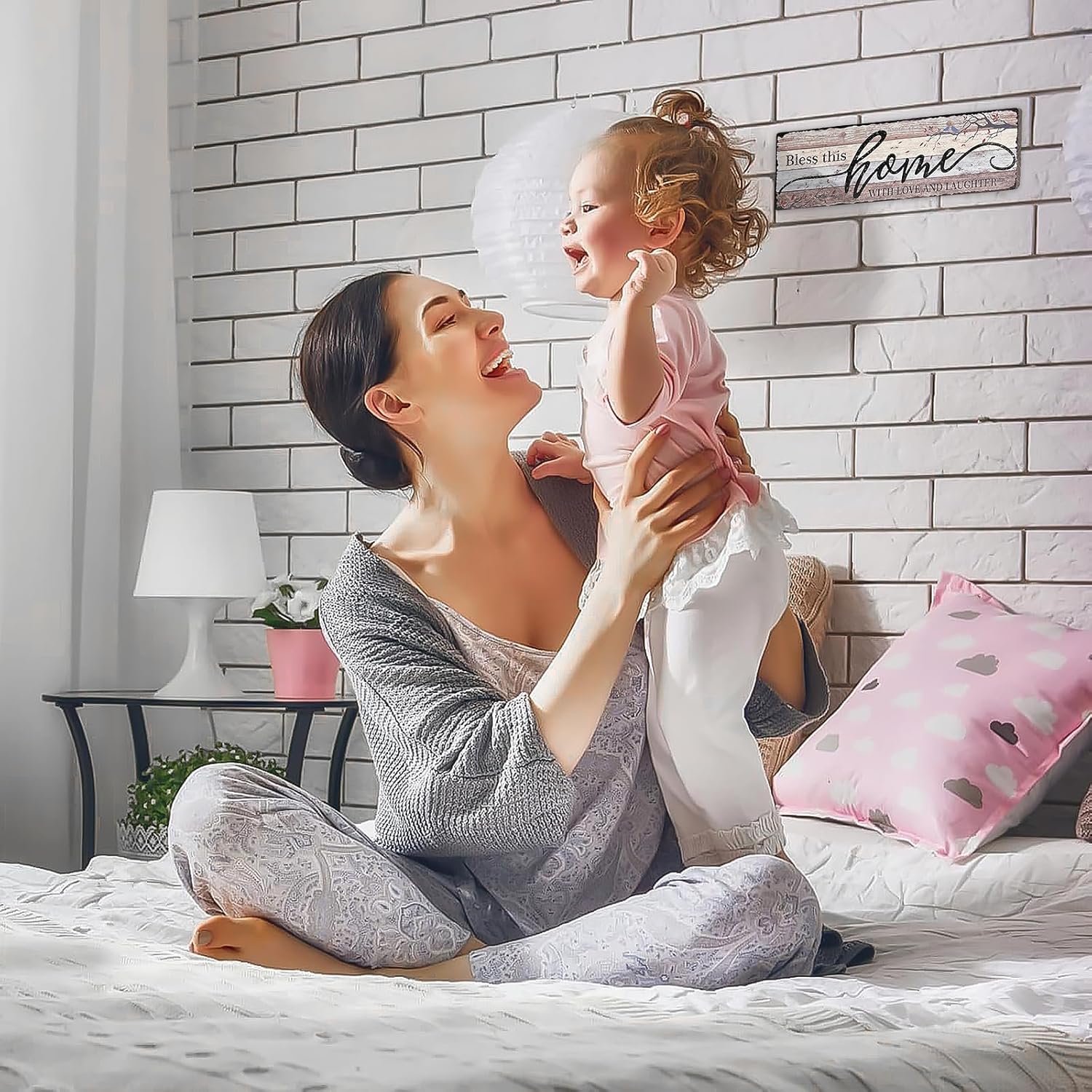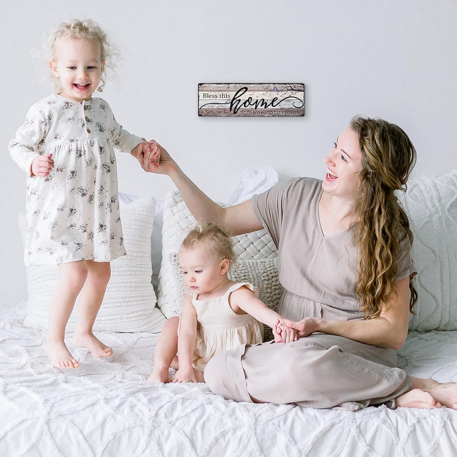 Home Sign Wall Decorations for Living Room Bless - This Home with Love and Laughter - Family Wall Decor Signs for Kitchen Bedroom Dining Room 16x5 Inches