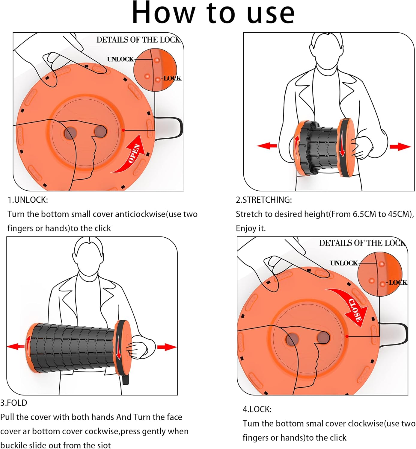 • 【ADJUSTABlE HEIGHT】 This Portable Stool can be adjusted to your desired height within the range of 2.4 to 17.71 inches. This makes it suitable for most adults to use anywhere!