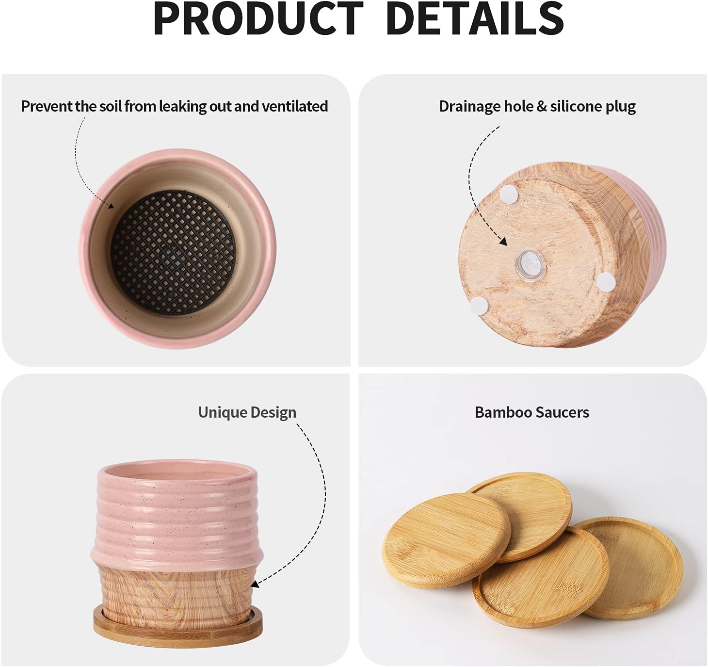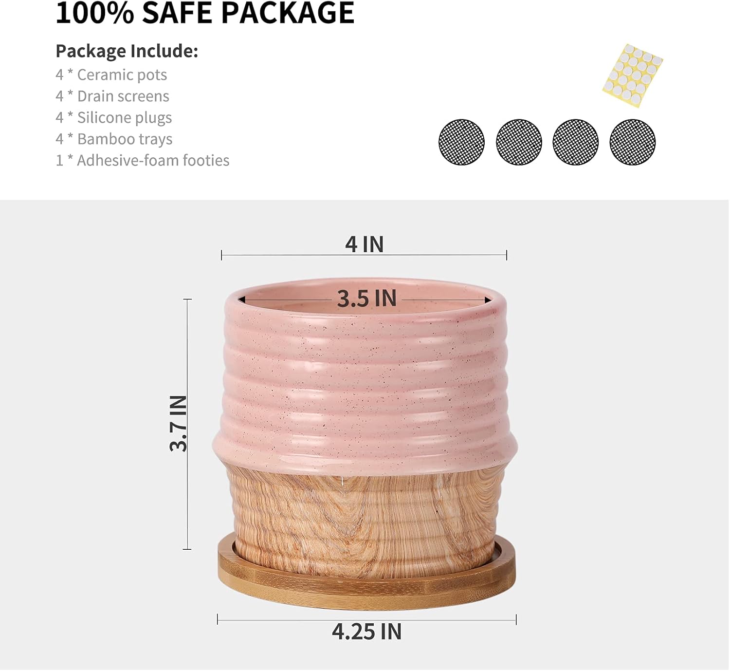 • 4 Inch Ceramic Pots-4 different color for you to apply to different places. ​Measuring in 4''(width) x 3.7''(height). Great idea for decorating living room, table, shelf, bedroom, windowsill, kitchen, garden. (Not included plant)