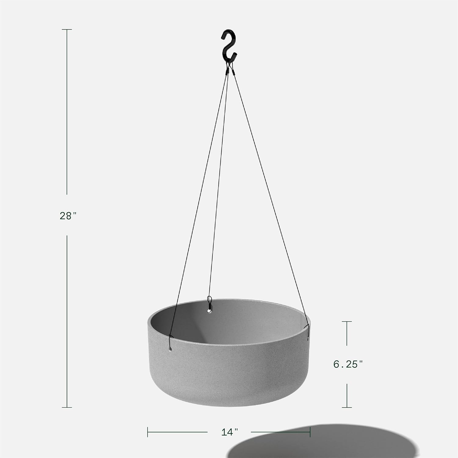• DIMENSIONS & DETAILS: The Hanging Kona Bowl planter measures 14 Inches in diameter and 6.25 Inches in height. With the hanging attachment, it measures 28" in Height