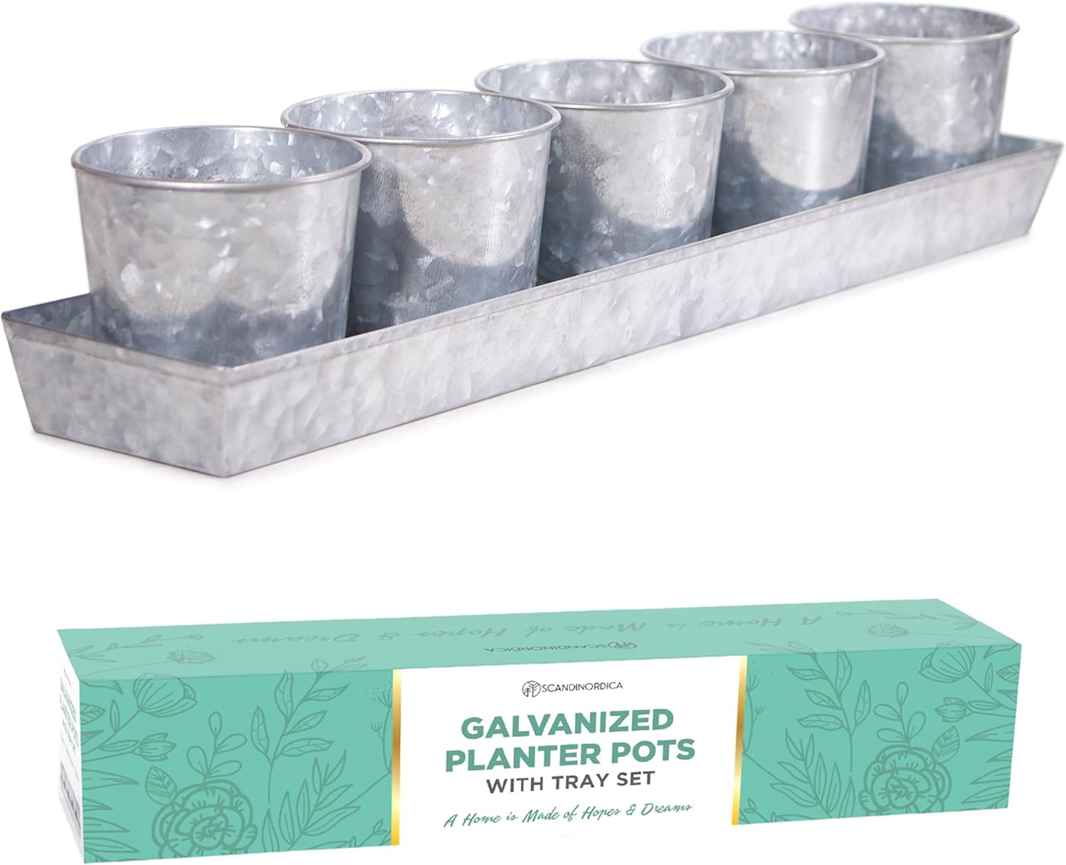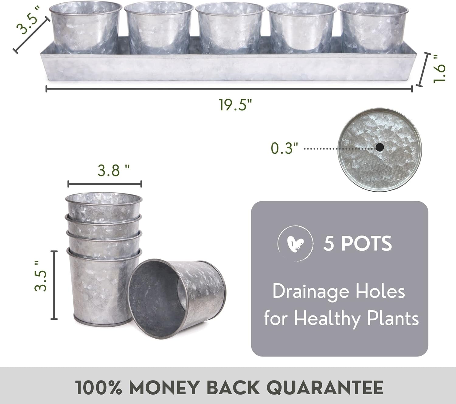 • STYLISH FARMHOUSE DECOR – This stylish and unique set of 5 galvanized garden pots combines practical design and superior functionality. Herb planters for indoor plants is a convenient addition to any chef's or home cook's kitchen