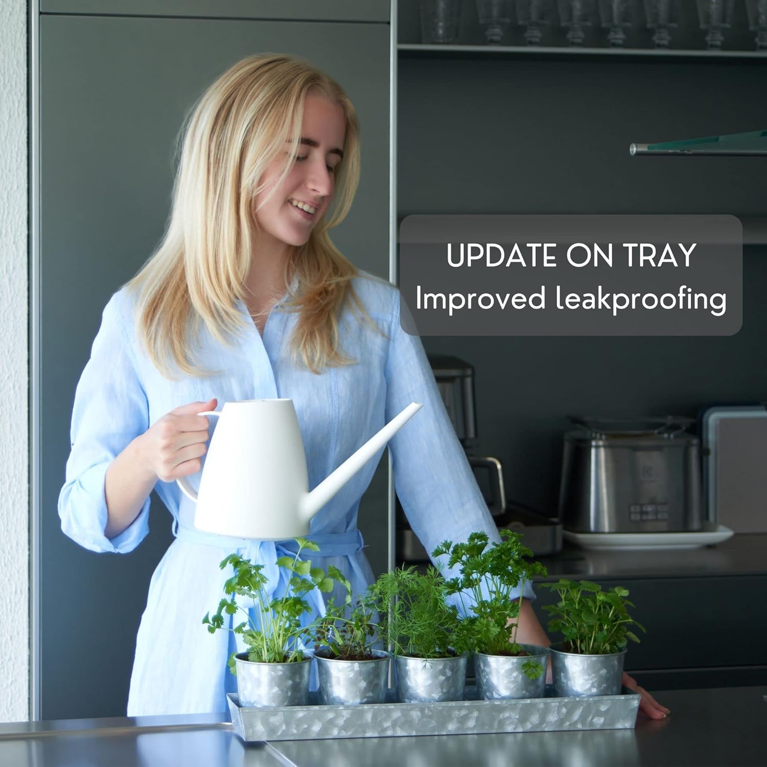 • STURDY AND STRONG - Made from the high quality galvanized steel. The rectangular tray keeps the herbs pots attractively corralled and easily transportable. Window sill herb garden tray dimensions: 19.5in L x 1.6in H x 3.5in W — Pots: 3.5” high, 3.8” top width, 3.1” bottom width