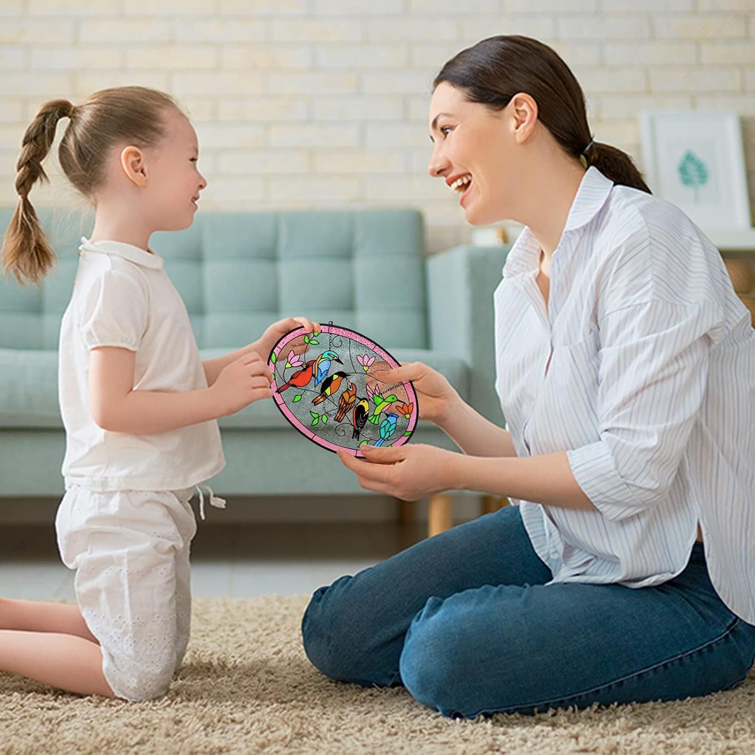 • High Quality Stained Glass - The suncatcher is made of high-quality stained glass. Compared to other products with fragile and opaque glass, our birds stained glass has a double-sided light transmission, the delicate lines of glass can be seen in the sunlight.