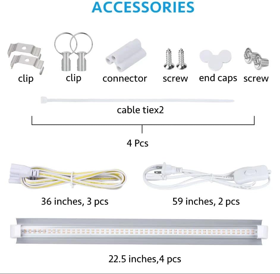 Grow Light, 2ft T8,100W(4 x 25W, 600W Equivalent), Super Bright, Full Spectrum Sunlight Plant Light, LED Grow Light Strips, Grow Lights for Indoor Plants,Greenhouse,4-Pack