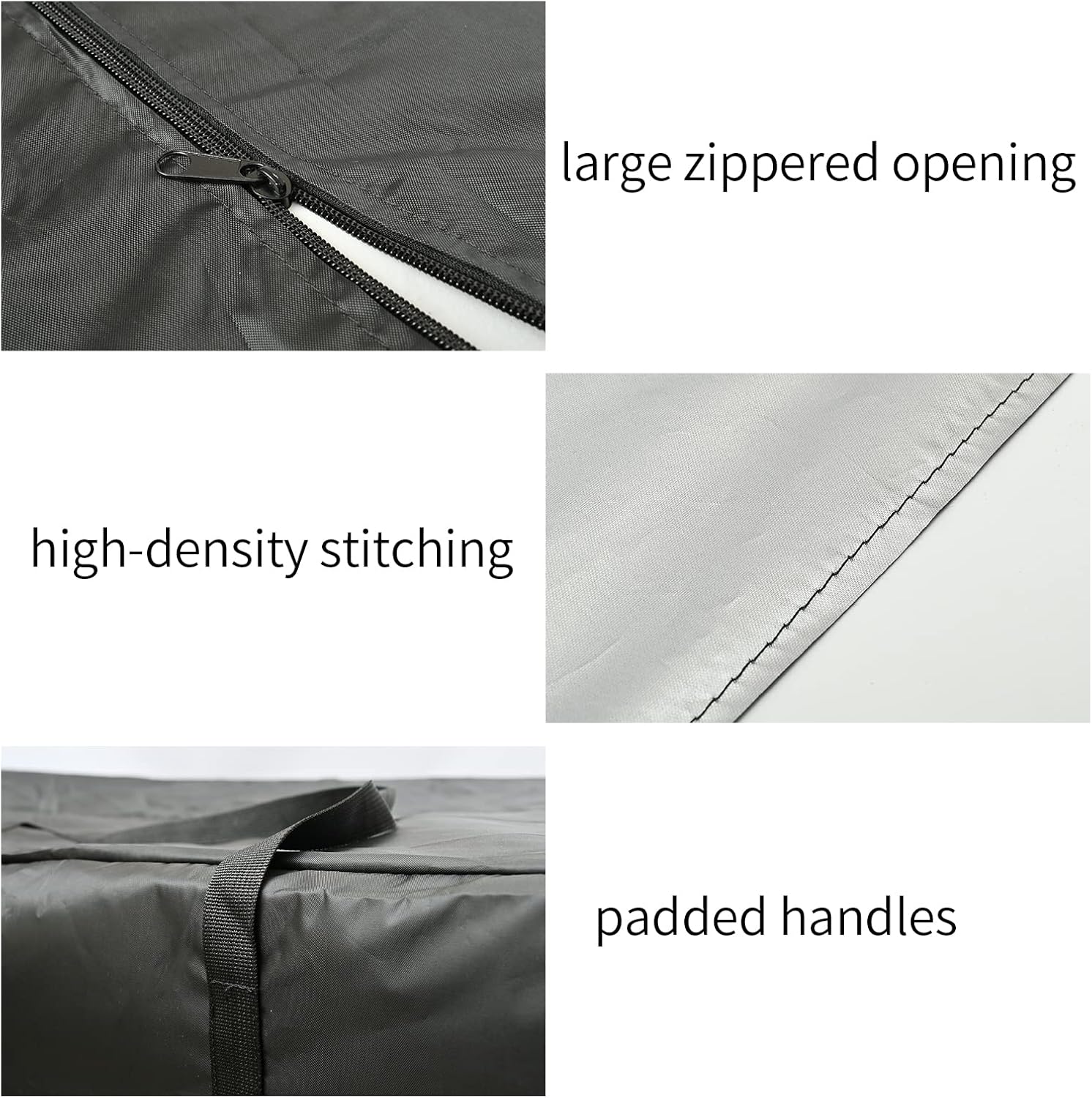 • 【FRIENDLY DESIGN】 With extra-large 68 inch zippered opening, the outdoor cushion storage bags oversized waterproof and more convenient for loading and unloading cushions, chairs, Christmas tree, pillows and so on. With 2 sturdy wide handles, the patio cushion storage bag waterproof extra large bag is comfortable for carrying.