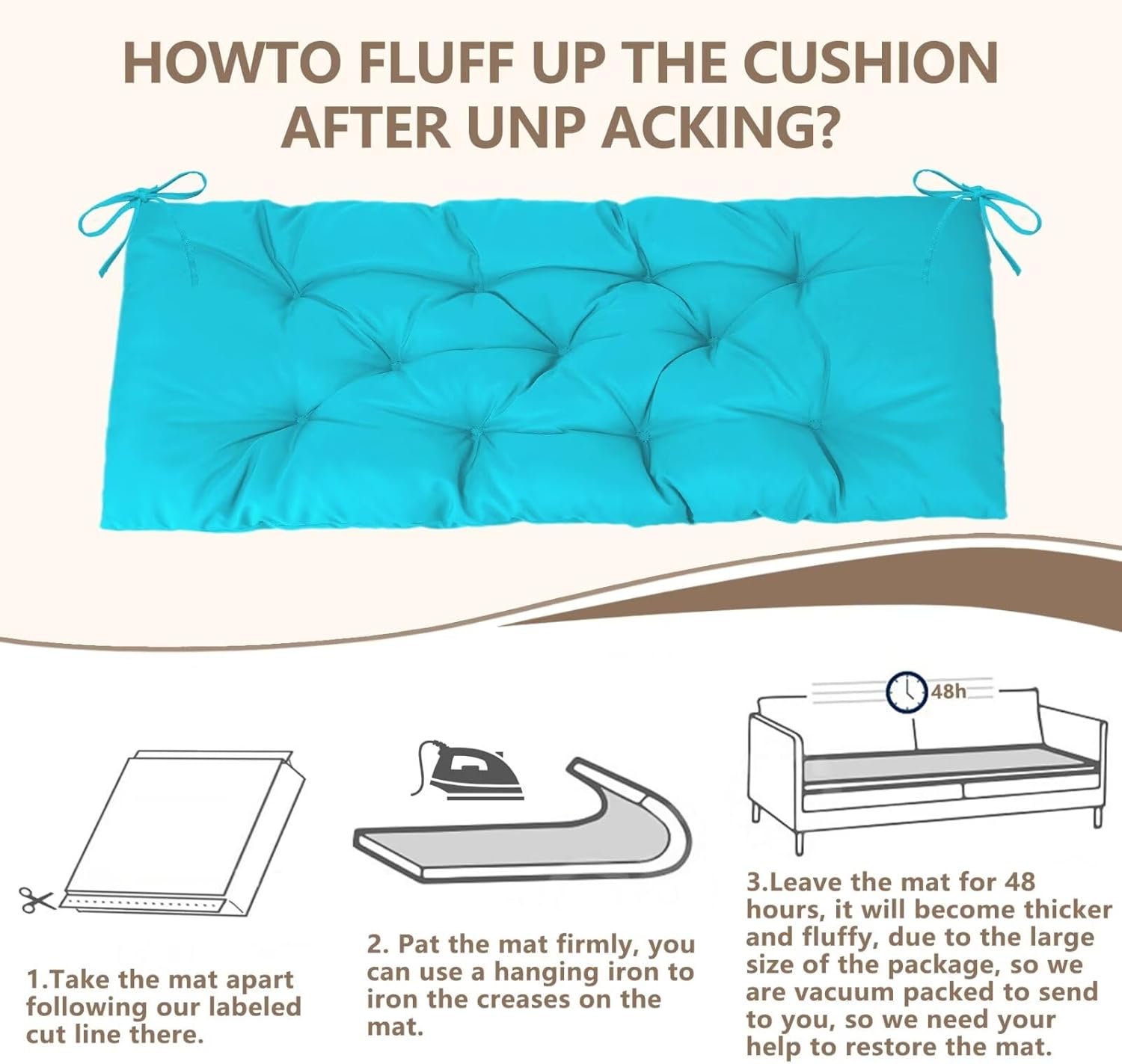 Waterproof Indoor/Outdoor Garden Bench Seat Cushions,Thicken Patio Bench Soft Rocking Chairs Pad Lounger Seat for Wicker Loveseat Settee(59 X 19.6 in,Turquoise