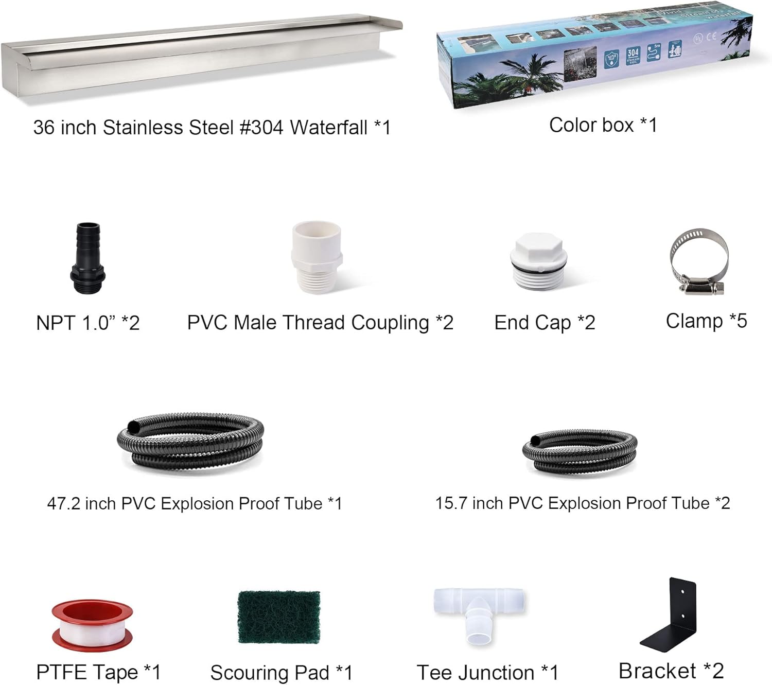 • Material and Function: This pond fountain will add a decorative touch to your pond or swimming pool and let you enjoy the relaxing sounds of the water for a sense of calm and well-being. The waterfall is made of 304 stainless steel, top wide open which is specially designed to guarantee a constant and uniform water flow.