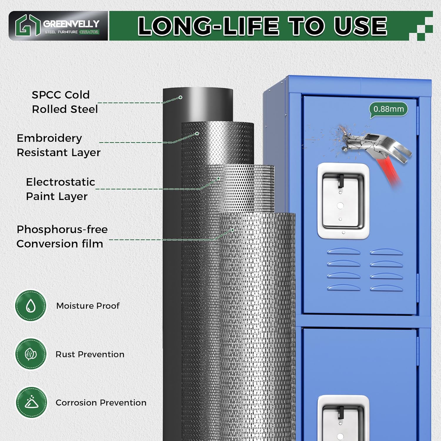 • 【 Quality Assurance 】: Our gym lockers are made of cold-rolled steel and equipped with stainless steel hinges, creating a more durable and sturdy frame. The green spray coating of metal storage cabinets is waterproof and corrosion-resistant, and can be used for a long time