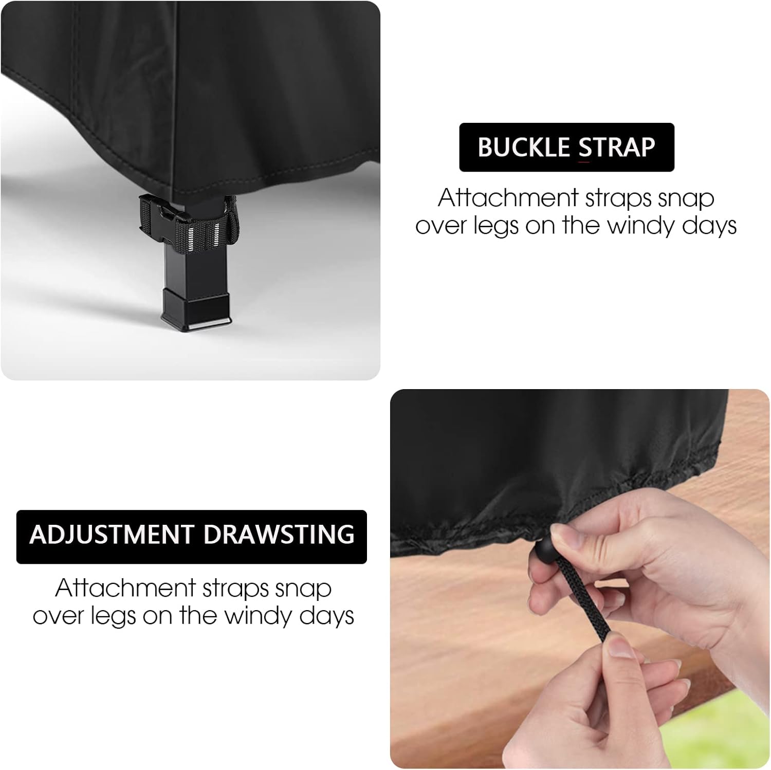 • Vents and Straps: Each side has a handle for better installation and movement, and the bottom drawstring can be easily adjusted to fit your pre table more safely and prevent wind and rain. There is a vent on each side to prevent damp.
