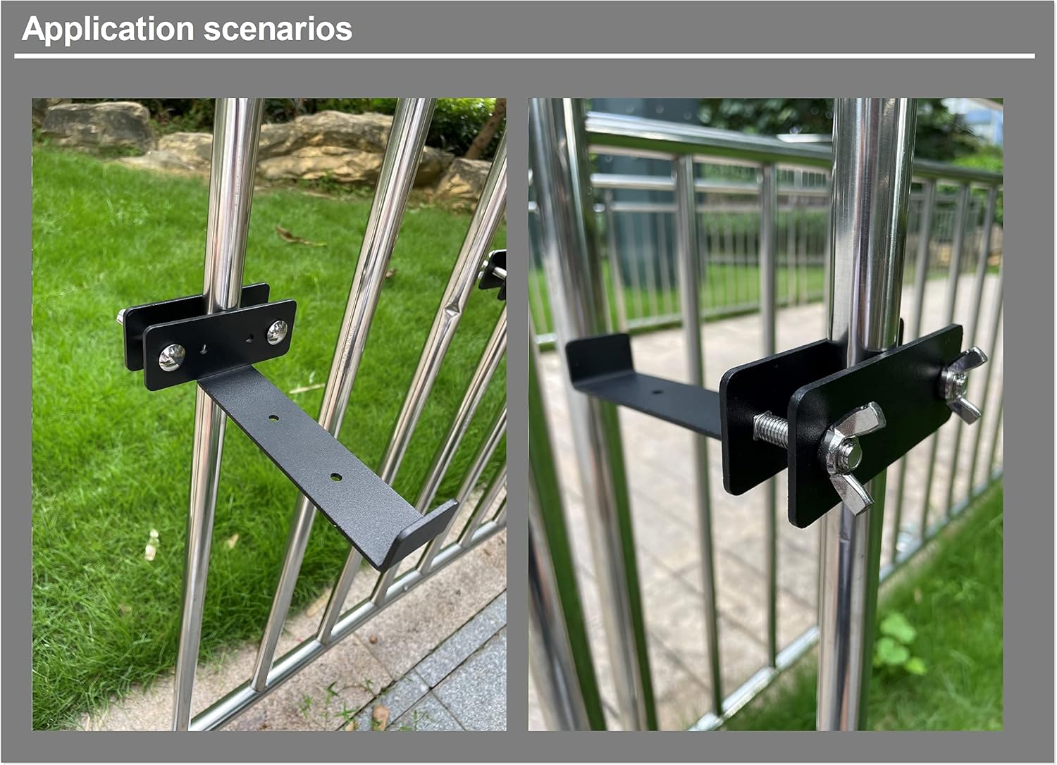 • Universal Fit Accessory:The planter box brackets can be clamped on anywhere & at any height on the deck, patio or balcony railing, it can hold your flower box stably and you don't need to worry about it breaking, adjusts to any vertical railing, fence pole, banister or spindle made of aluminum, metal, wood and so on
