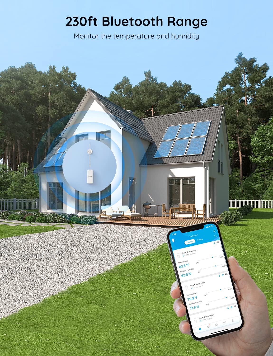 • Data Storage & Export: Our free cloud service allows for 20-day online data storage and 2-year data export. Keep track of the recent temperature and humidity records via curve graphs and track your historic 2-year data in a CVS file.