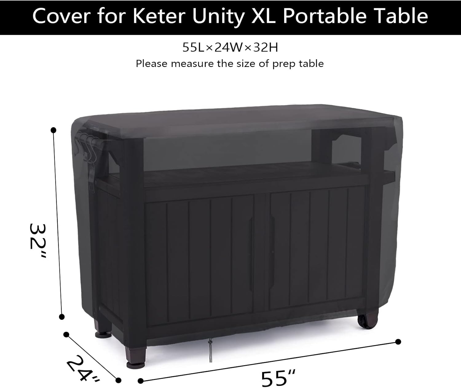 • Size: 55 x 24 x 32 inch, The furniture cover is very suitable for Keter Unity portable XL outdoor table, and can also be used with other types of furniture. Before buying, measure your size of the table or cart to ensure that it can be used.