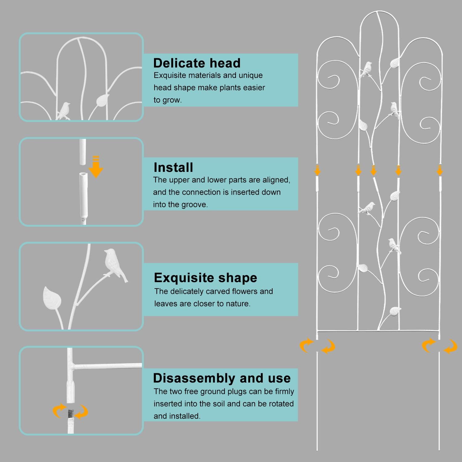 • EASY TO INSTALL PLANT TRELLIS: This plant support for indoor plants is no need to disassemble the assembly, no screws, no wrench, no screwdriver, just simply stick and secure the trellis legs stake into ground. What an easy plant trellis for climbing plants outdoor is!