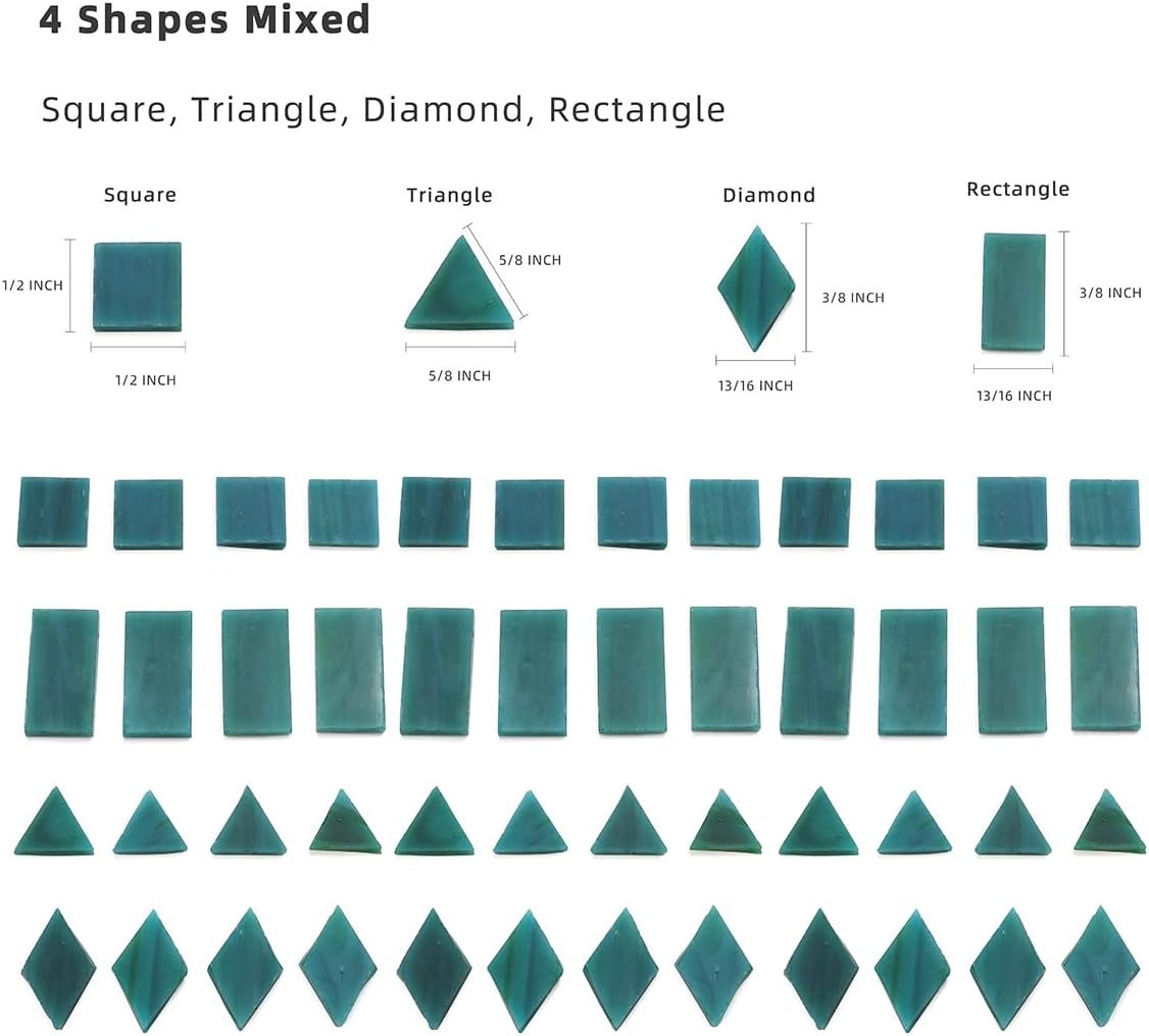 Lanyani 200 Mixed Color Glass Mosaic Tiles - 4 Shapes, Tiffany Stained Glass Pieces for Crafts, Turquoise