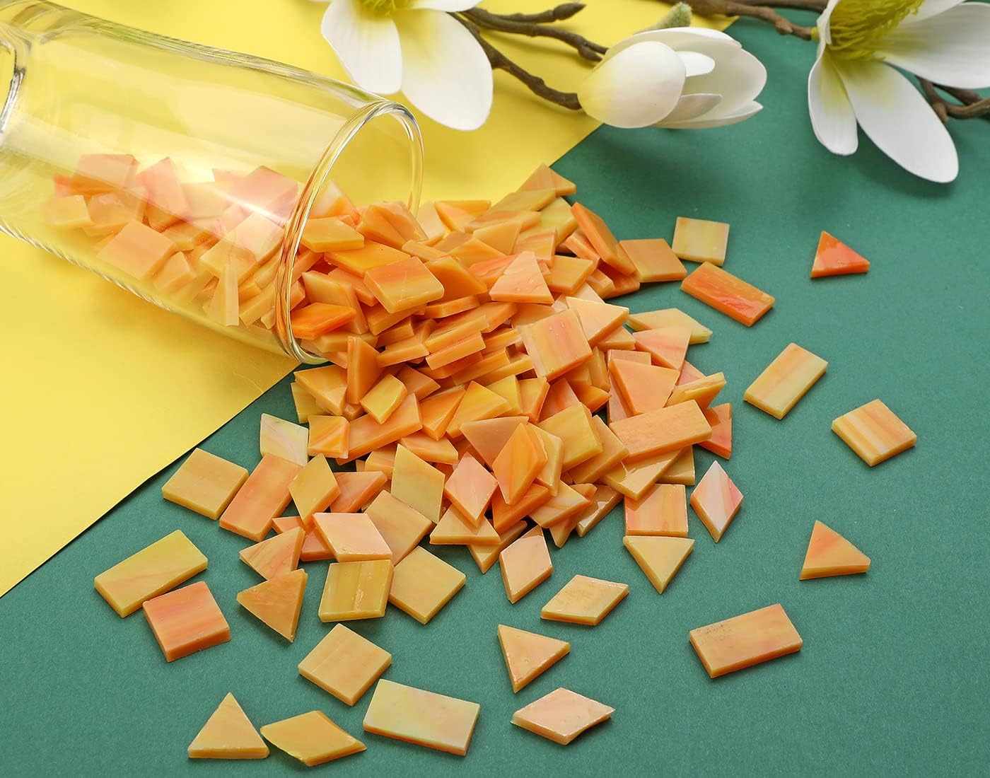 Lanyani 200 Mixed Color Glass Mosaic Tiles - 4 Shapes, Tiffany Stained Glass Pieces for Crafts, Pumpkin Orange