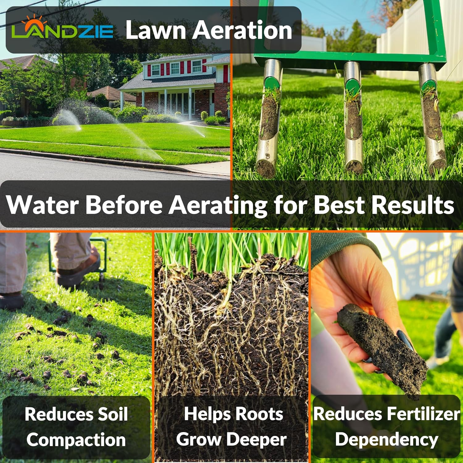 • BUY WITH CONFIDENCE: The Landzie Guarantee - Here at Landzie, nothing comes before our customers. Since day 1, we've built our entire lawn plugger aerator core business with you, our customer, in mind. We guarantee 100% satisfaction for every purchase of a coring aerator and will work rigorously to achieve that goal. Landzie products are designed to the highest standards in the industry, ensuring you are getting top-quality core airator at an affordable price