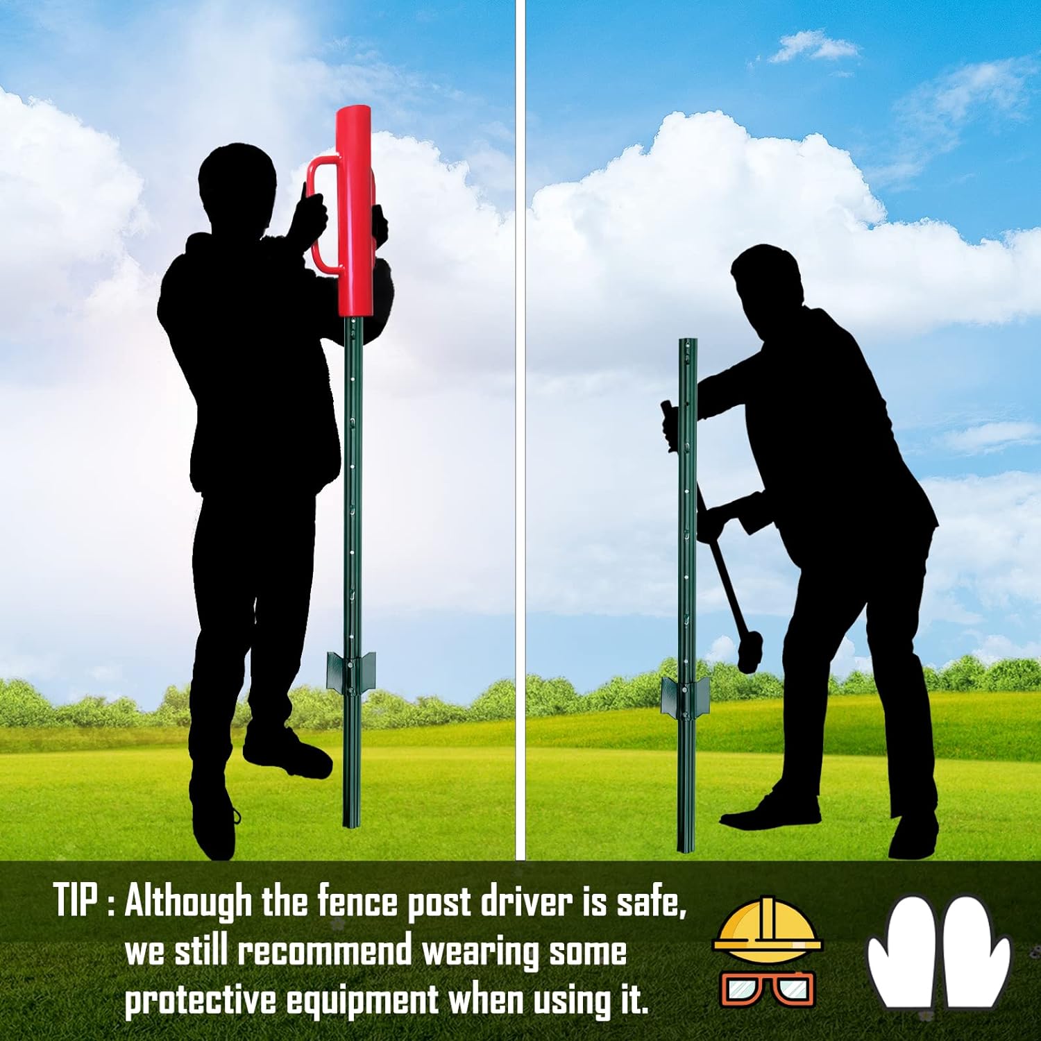 • 【A GREAT HEAVY DUTY TOOL】This high-quality fence post driver makes it easy for you to drive wooden fence posts deep into the ground. It is a great tool to designed to drive t-post, wood, metal or any type of fence posts