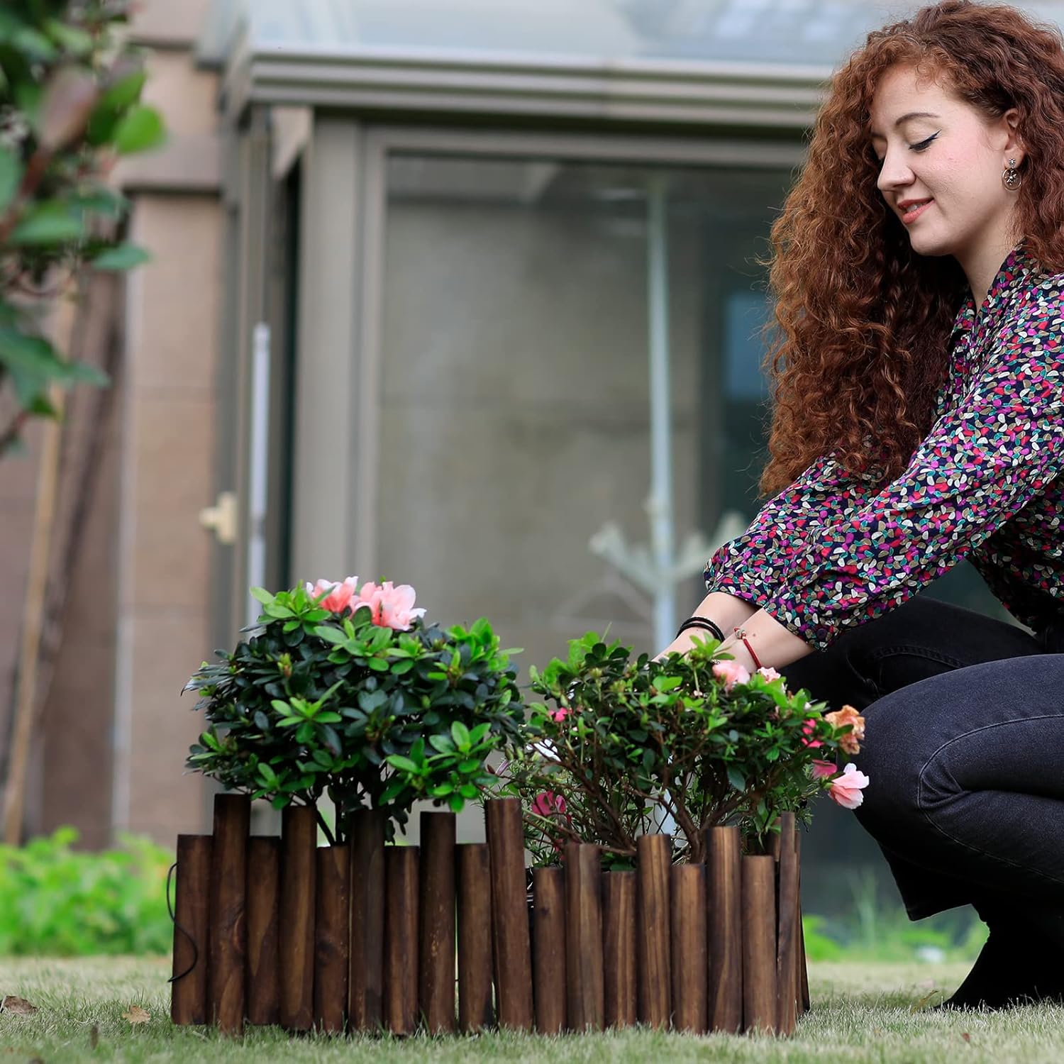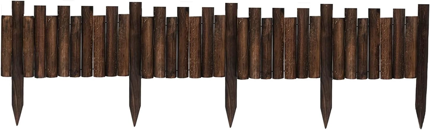 • About the Edging: 8 inch height above ground, stakes Height 4 inch, 3.6 Feet total Length; Made from sturdy wood with a carbonized finish, this short fence is durable and long-lasting, standing up to outdoor elements.