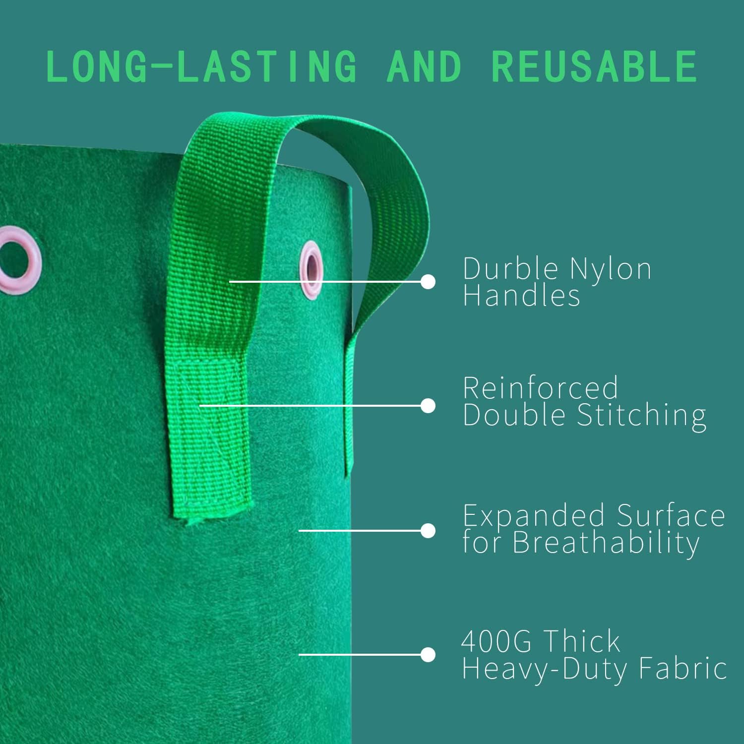 • HEAVY DUTY Handles for easy transport between gardening locations. Extra thick bags made with 400g non-woven material (higher than industry standard) to facilitate air pruning while preventing over exposure of root system to lights or sun.