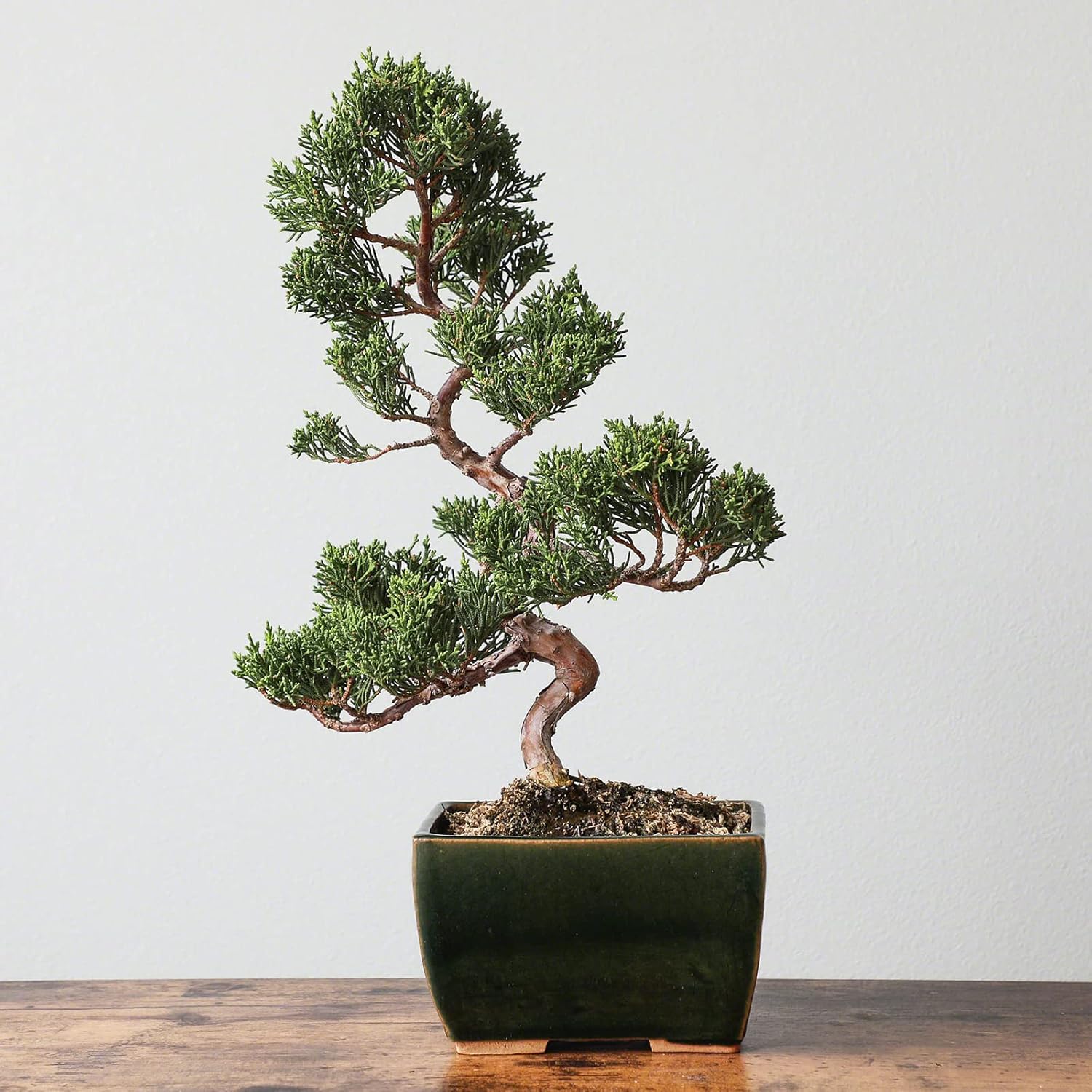 • 【Features】Rectangular bowl with a beautiful and shiny olive green glaze. Thanks to the firing process, Tokoname ware pots are less likely to crack when temperature changes. Also, with 1 large hole for drainage and 2 small holes for wires, it's great bonsai pot for repotting and training trees.