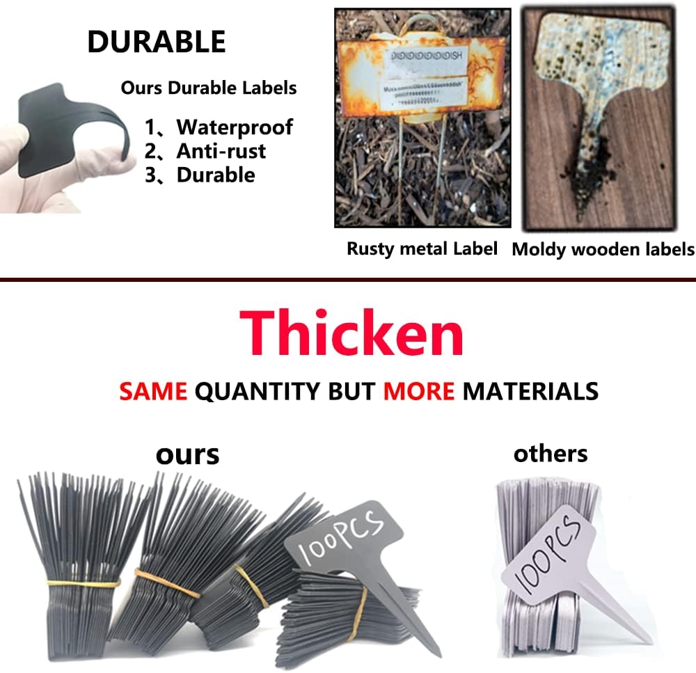 100 Pcs Waterproof Black Durable Plastic Plant Outdoor Garden Labels Nursery Markers T-Type Thick Tags Re-Usable for Vegetables Seedlings