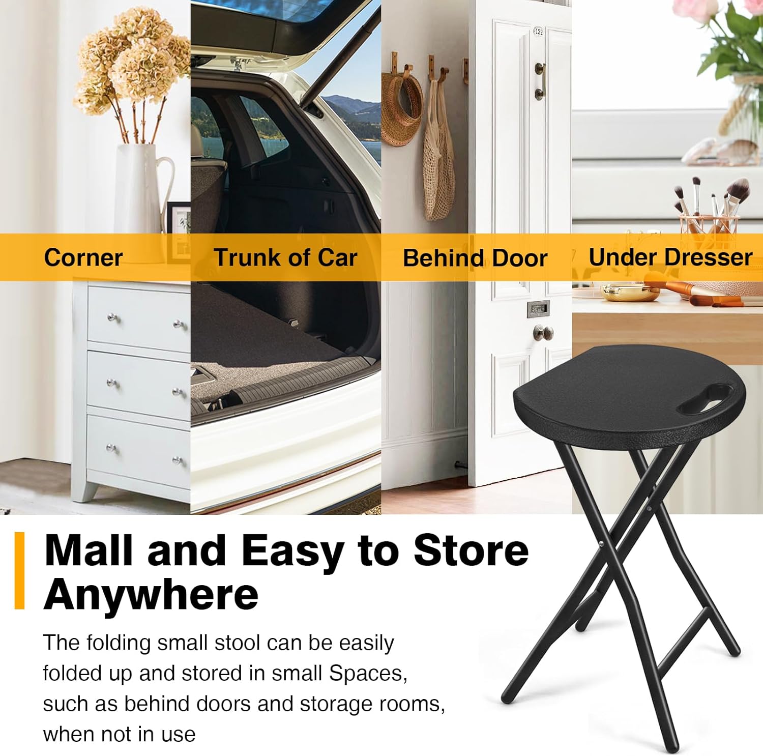 • Easy to Clean and Store - The folding stool is made of UV protected high-density polyethylene plastic with All-Weather Finish and easy to clean. The folding small stool can be easily folded up and stored in small Spaces, such as behind doors and storage rooms, when not in use.