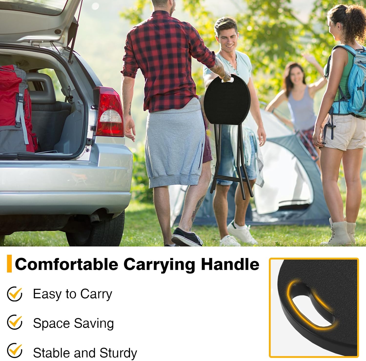 TAVR Furniture Portable Folding Chair with Handle, Heavy Duty Round Fold Stool Chair with 500lbs Capacity for Adults, 18 Inch Foldable Stool for Dorm, Kitchen, Vanity, Church and Outdoor use