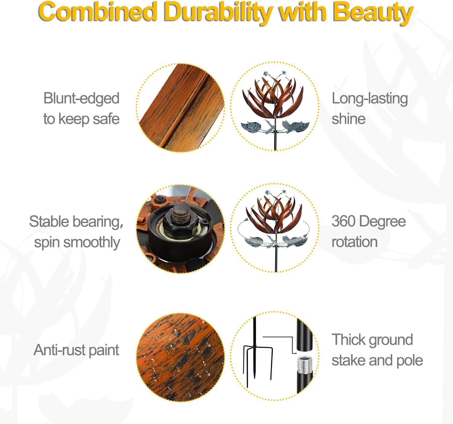 • 【Combined Durability with Beauty】LimeHill metal garden wind spinners are crafted from sturdy material to last for seasons to come, extremely detailed and impeccable Craftsmanship.