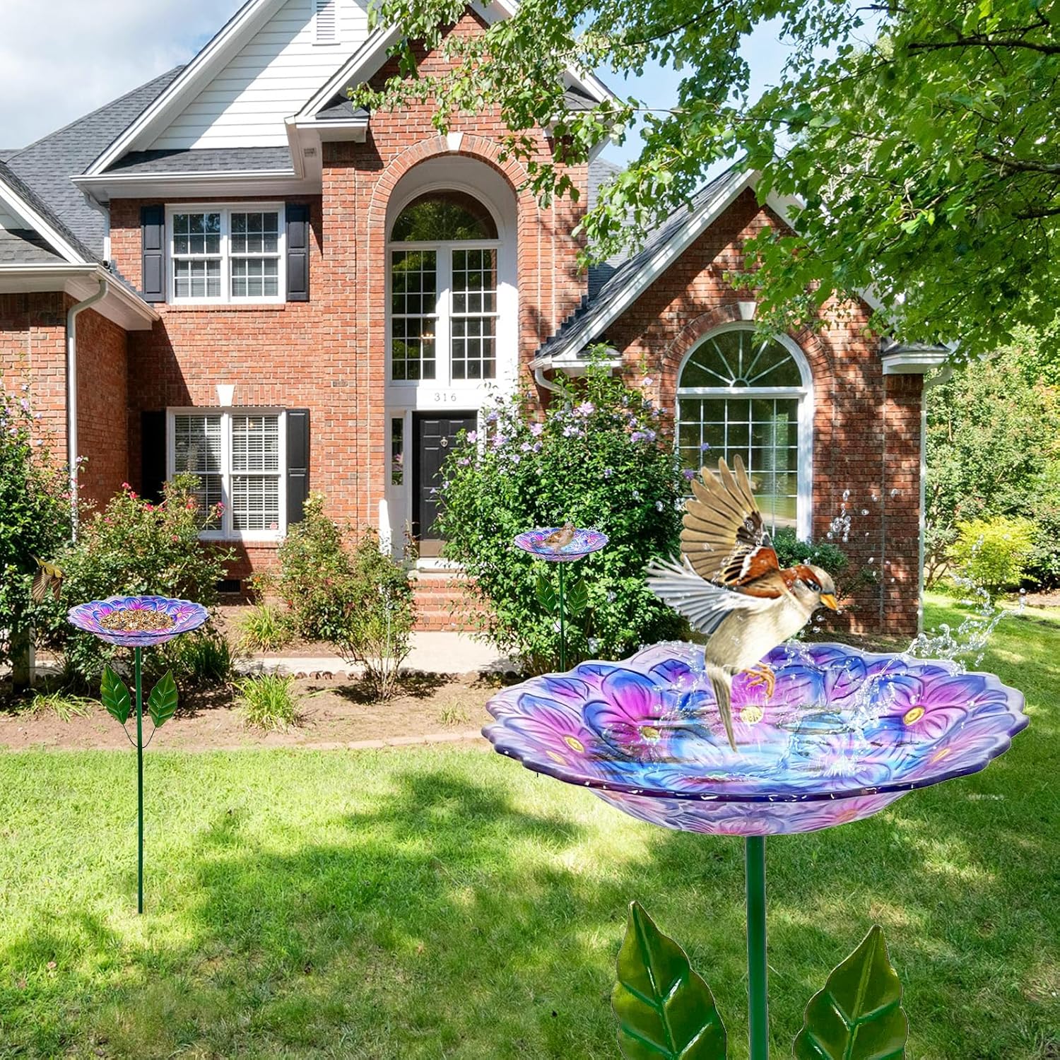 • ✨【Exquisite Bird Bath】It is not only a bird feeders for outdoors, but also a place for birds to take a bath. The colorful flowers glass tray will successfully attract the sight of wild birds for you to watch it up close in your leisure time in yard, garden, balcony, patio, lawn, etc