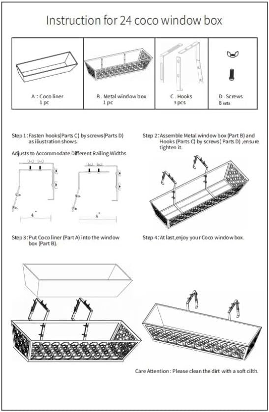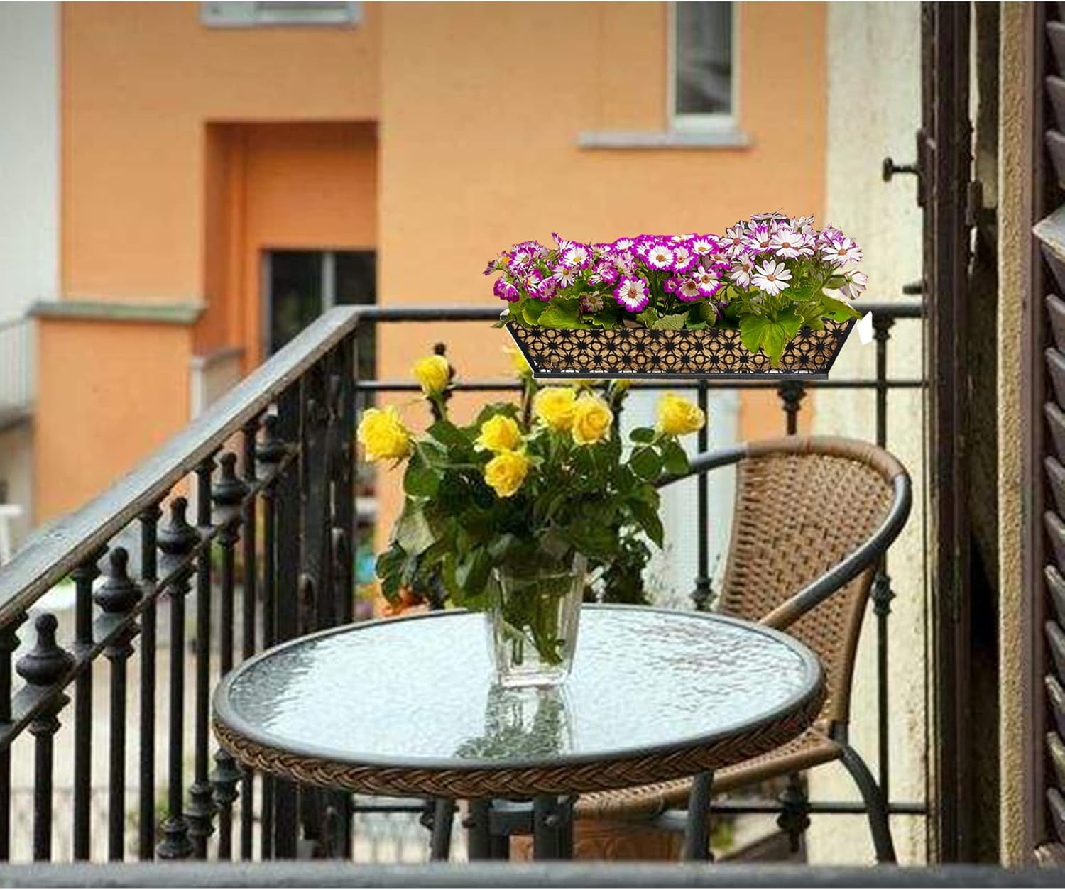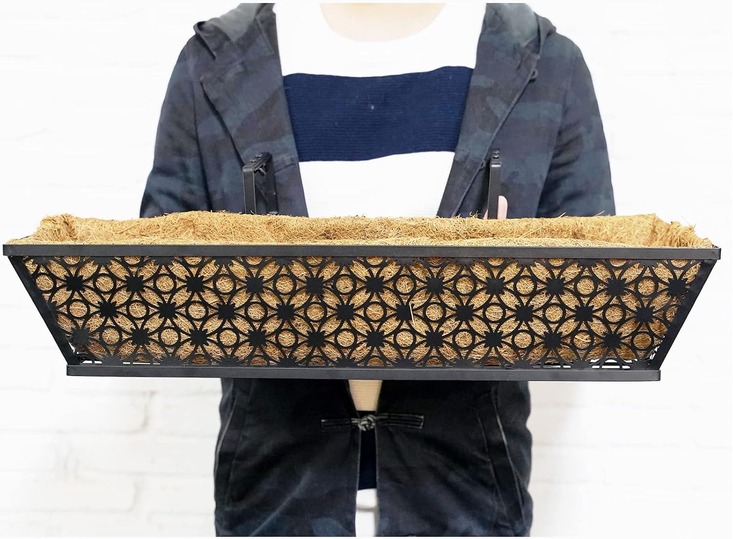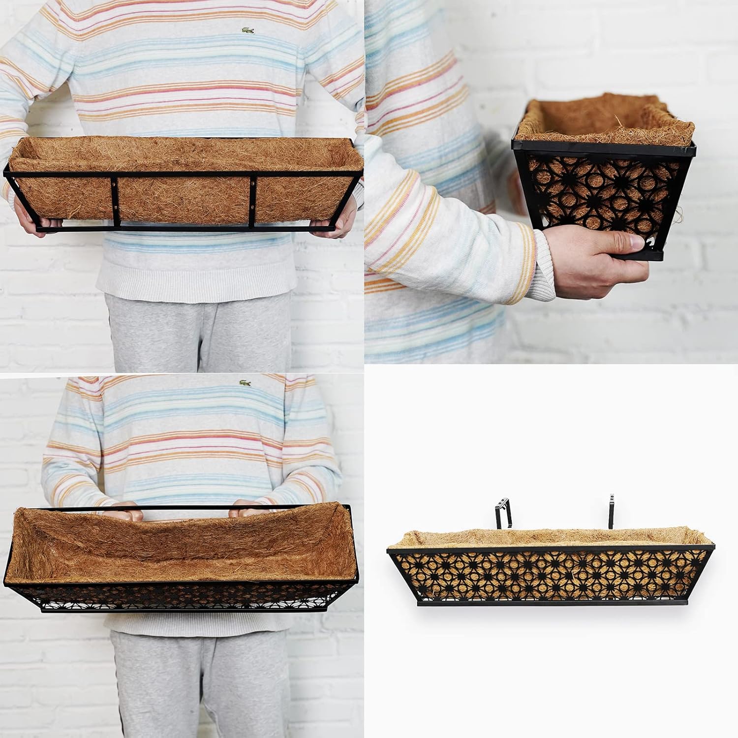 • EASY ASSEMBLY: Balcony railing planter box Comes with natural coconut liner and a metal caddy with adjustable brackets that can be easily assembled. Coco fiber liner provides superior drainage, reduces unwanted water leakage and prevent soil from falling.