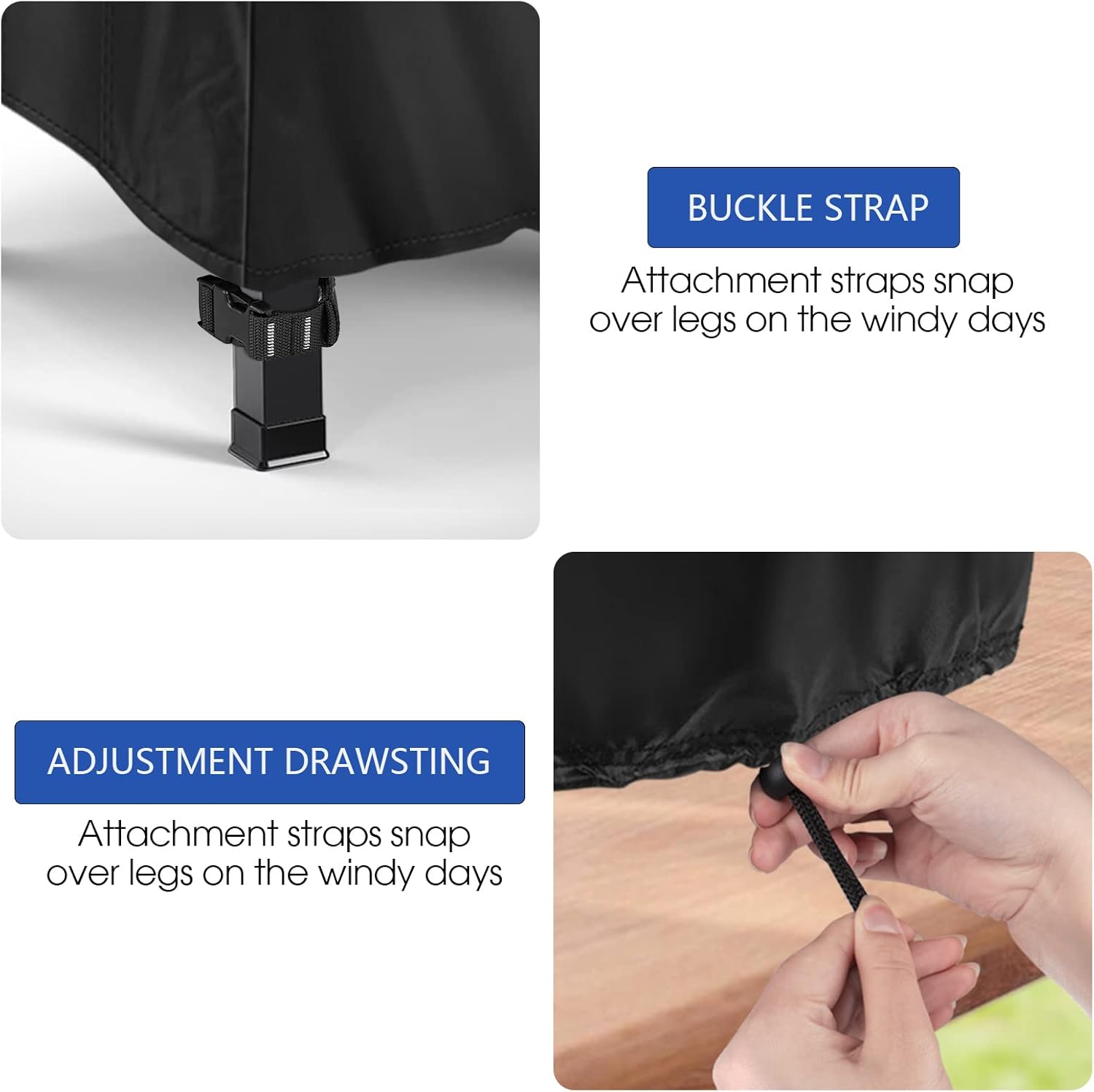 • Windproof: There is an adjustable drawstring and two velcros at the bottom of cover, which fits closely to the furniture to prevent the cover from being blown away by strong winds.