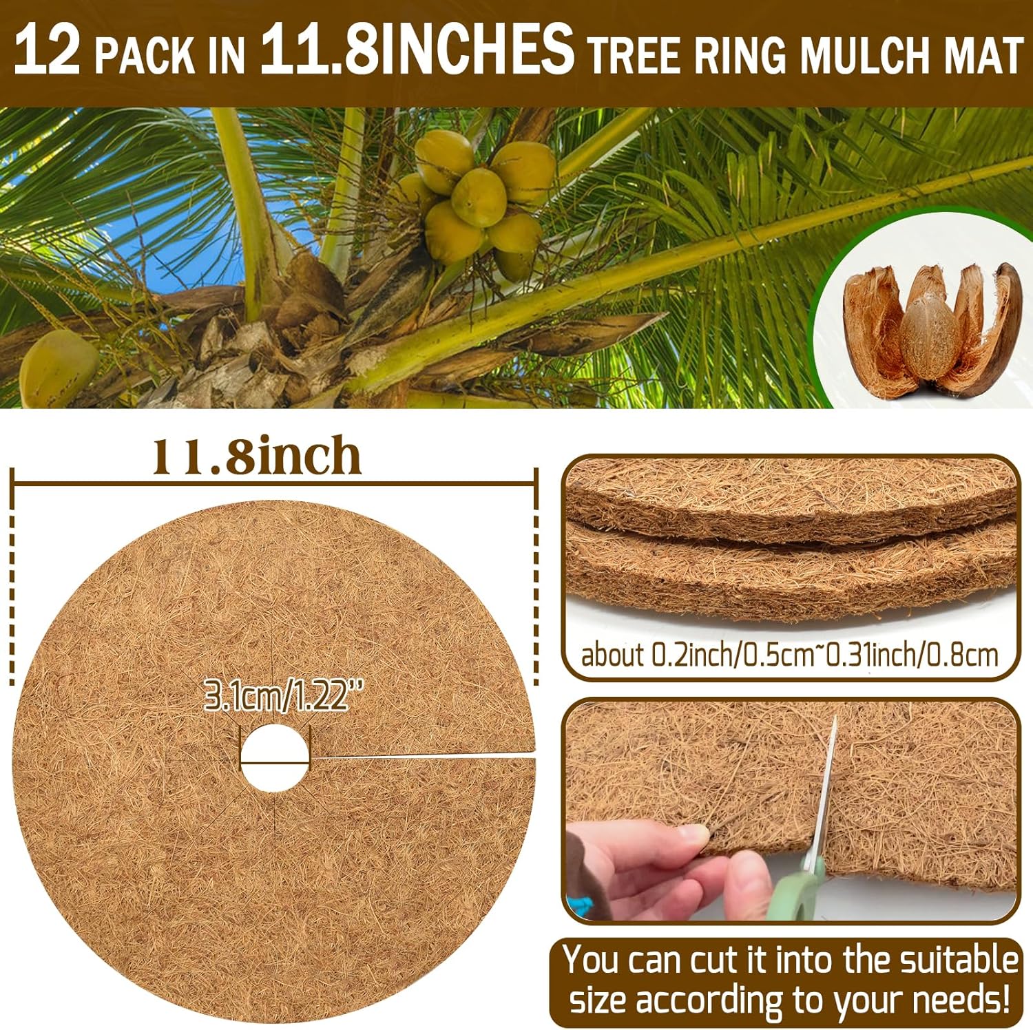 • Mulch Ring Tree Mat: You will get 12 pcs coconut mulch rings, which are enough for your daily needs, you can use them to keep weeds from growing; cover them on the roots of plants to look beautiful and tidy