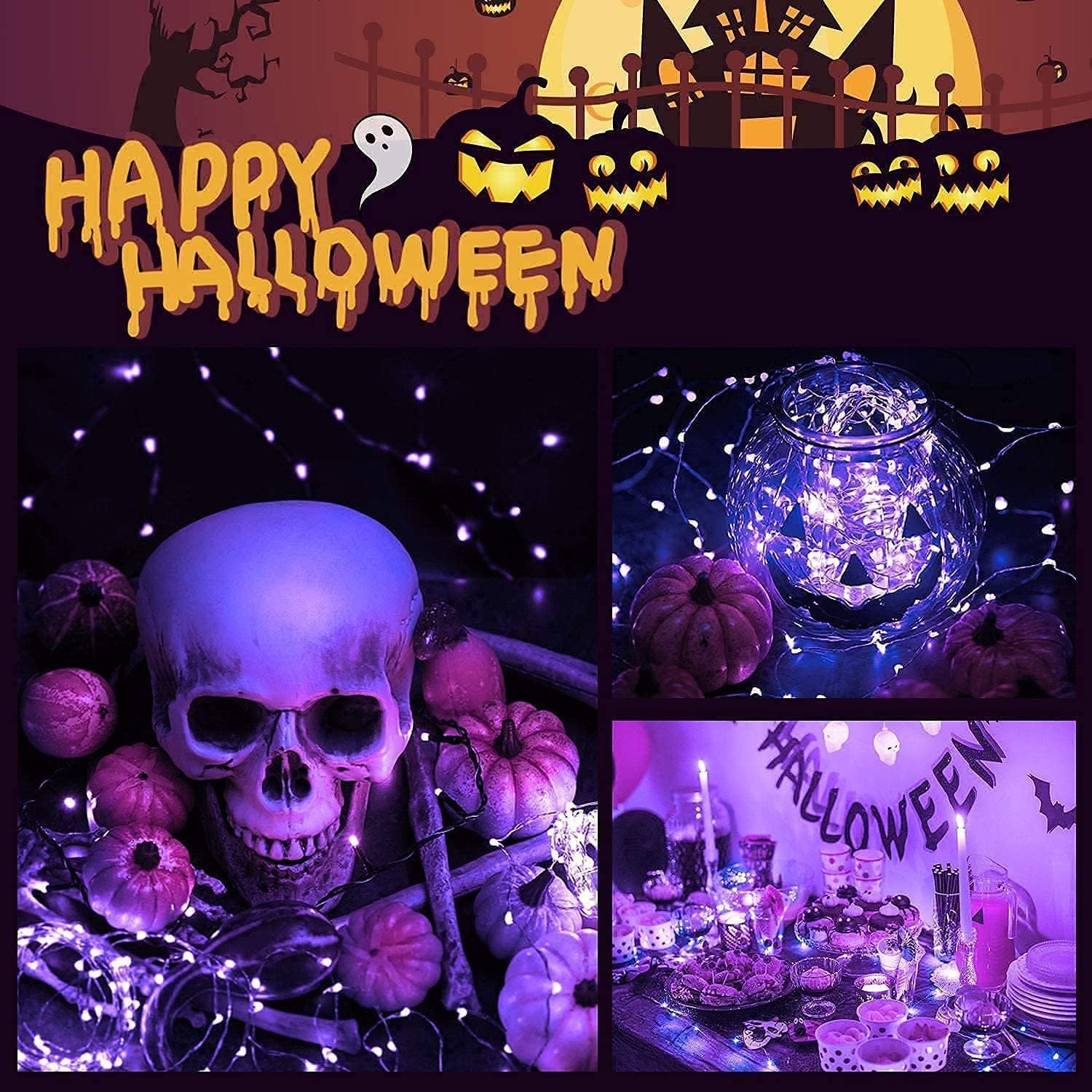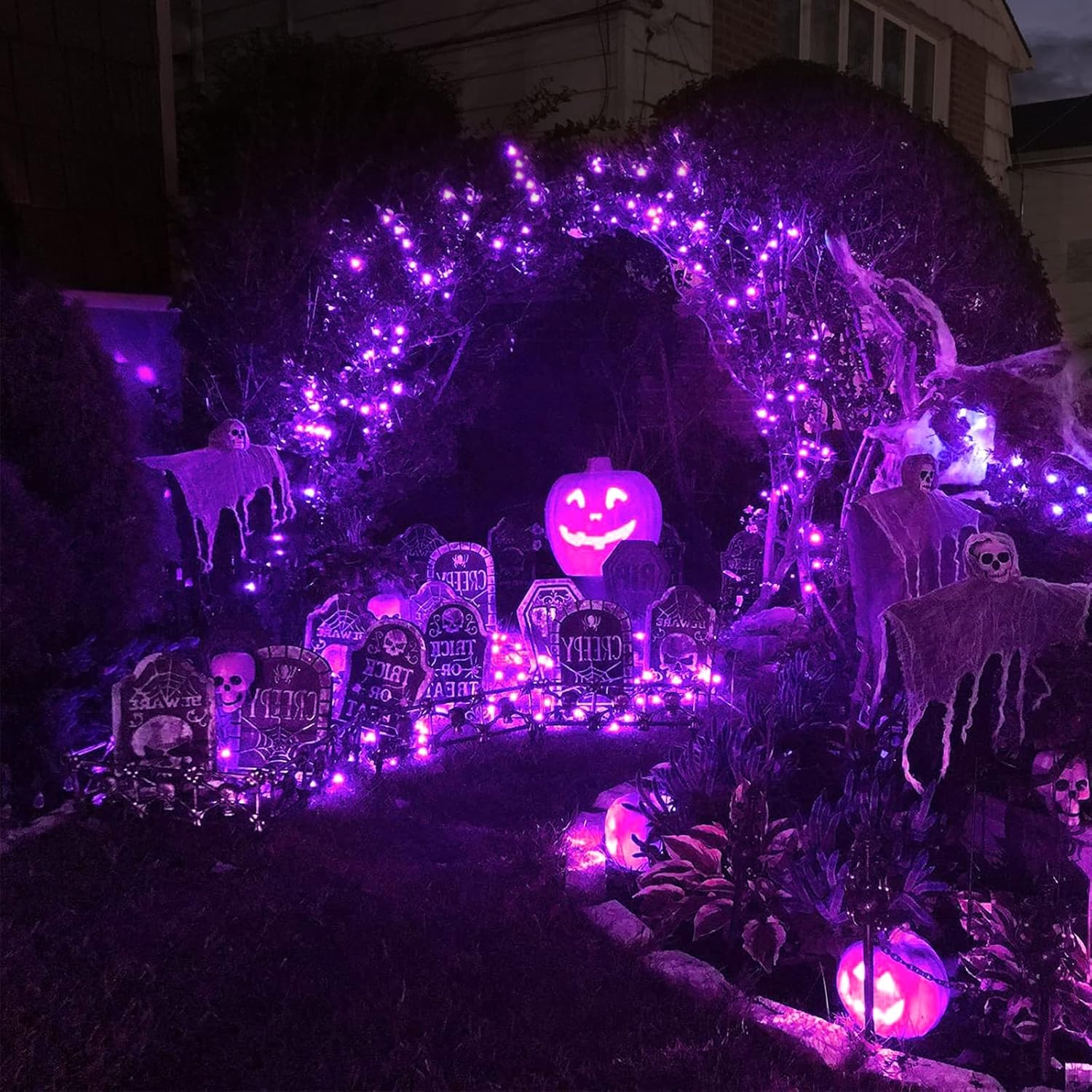 • 【Any Weather Suitable & Safety】When you are celebrating holiday outdoors, it would be terrible if the lights were extinguished by a sudden rainstorm. Fortunately, our purple Halloween lights outdoor are IP65 waterproof, so don't be anxious about rain interrupting your recreation. Besides, insulated copper wires keeps the lights cool for safety.